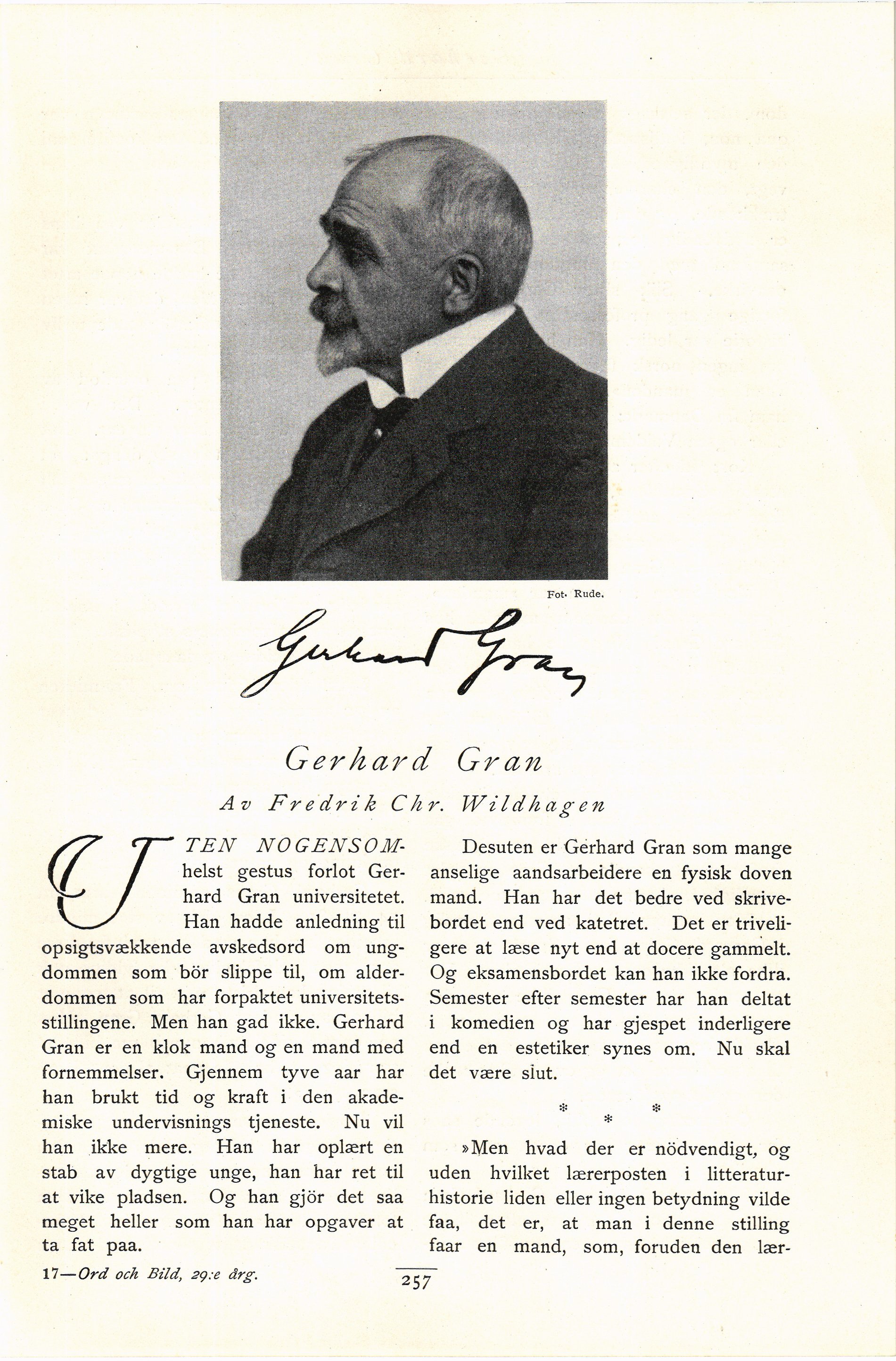 Full resolution (JPEG) - On this page / på denna sida - Femte häftet - Gerhard Gran. Av Fredrik Chr. Wildhagen