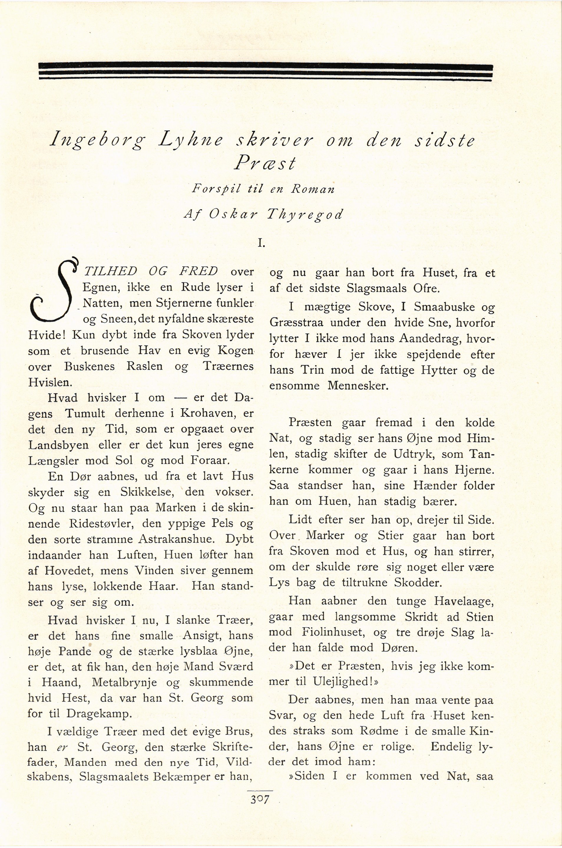 Full resolution (JPEG) - On this page / på denna sida - Sjätte häftet - Ingeborg Lyhne skriver om den sidste Præst. Forspil til en Roman. Af Oskar Thyregod