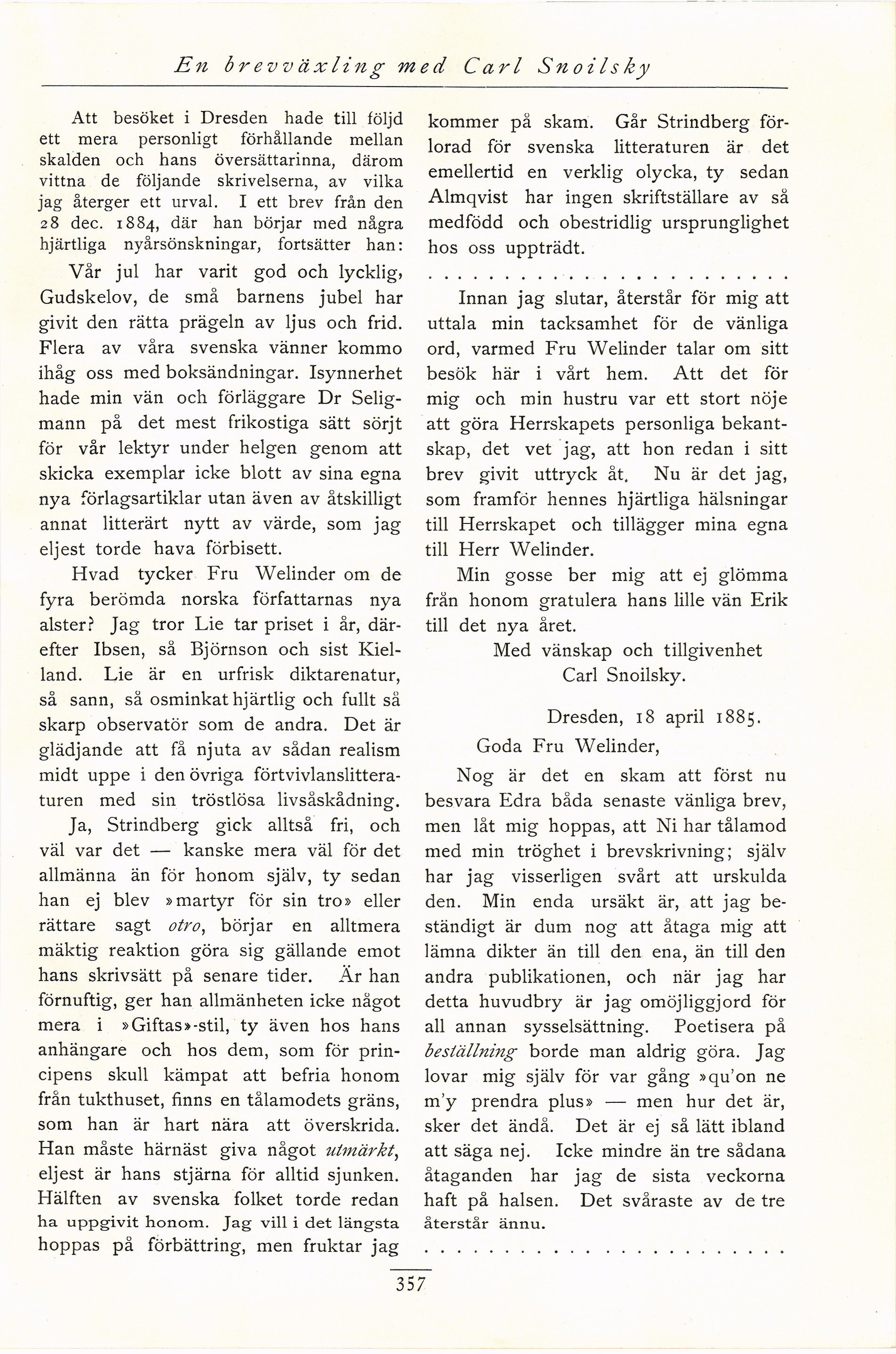 Full resolution (JPEG) - On this page / på denna sida - Sjunde häftet - En brevväxling med Carl Snoilsky. Av Hélène Welinder