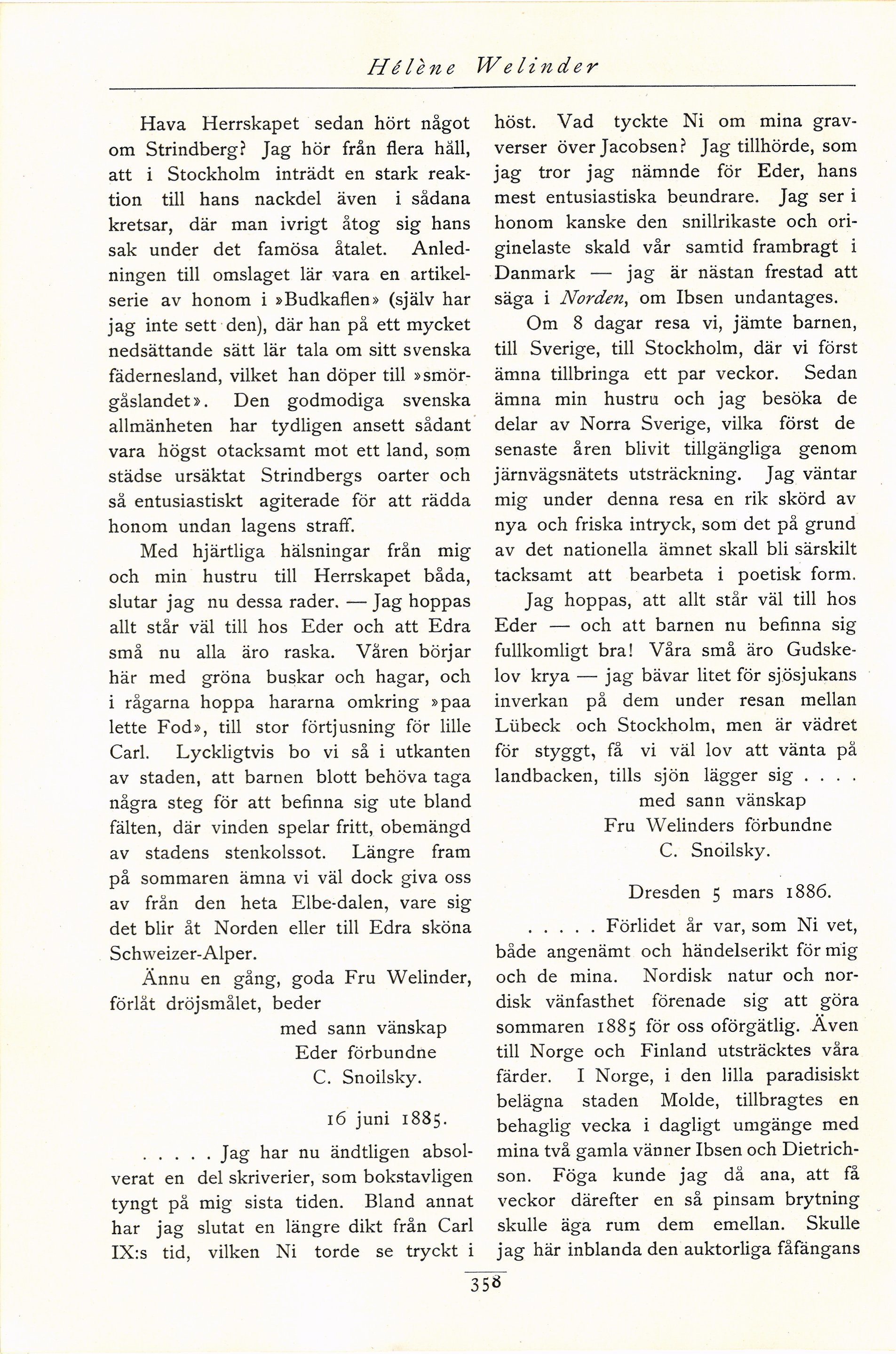 Full resolution (JPEG) - On this page / på denna sida - Sjunde häftet - En brevväxling med Carl Snoilsky. Av Hélène Welinder