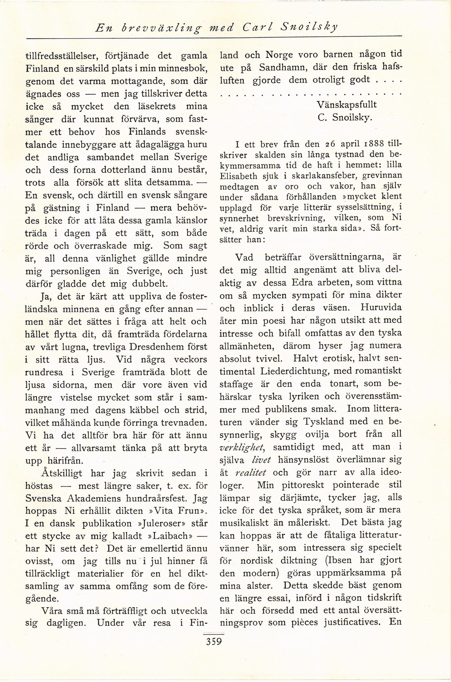 Full resolution (JPEG) - On this page / på denna sida - Sjunde häftet - En brevväxling med Carl Snoilsky. Av Hélène Welinder