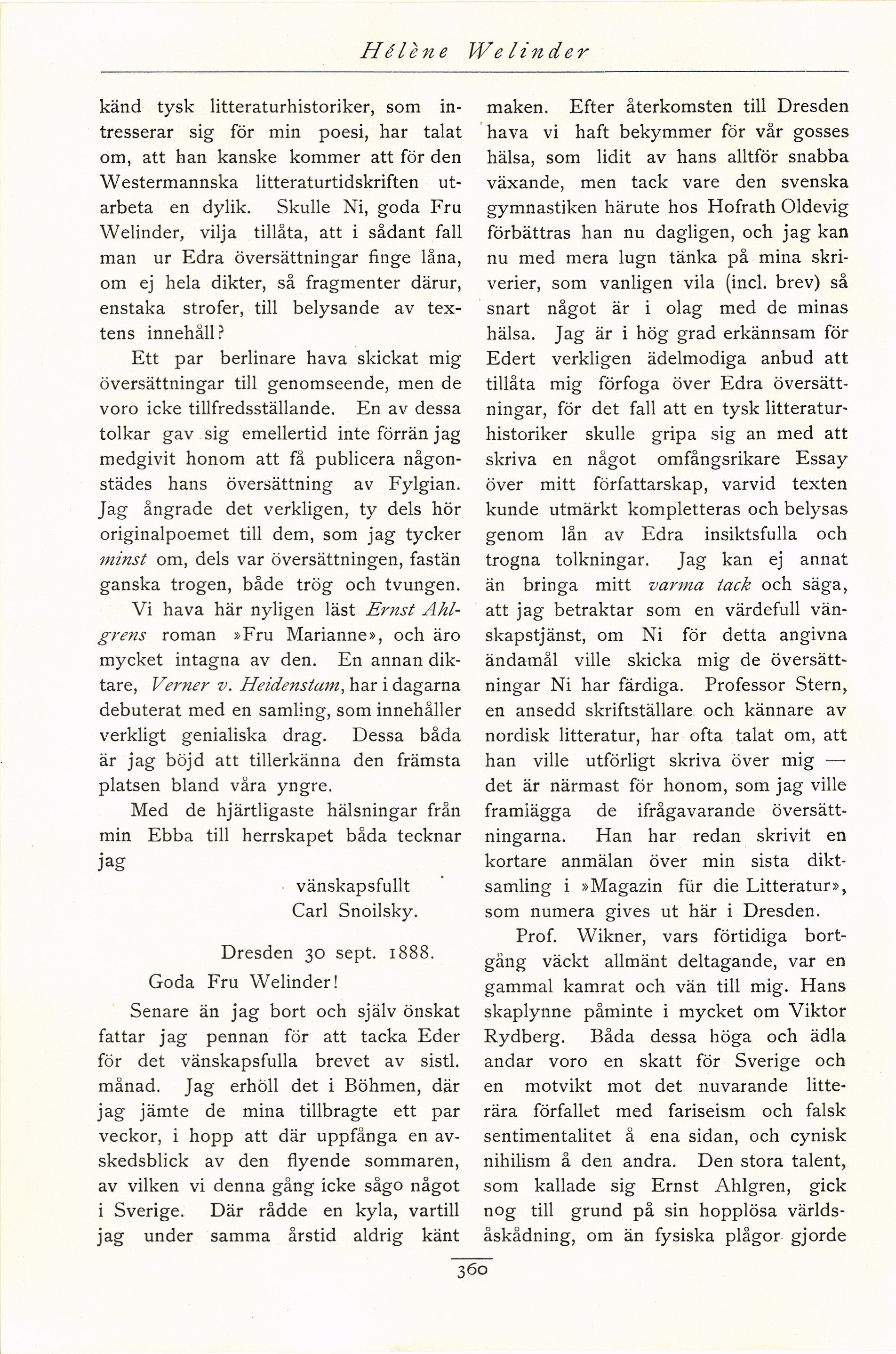 Full resolution (JPEG) - On this page / på denna sida - Sjunde häftet - En brevväxling med Carl Snoilsky. Av Hélène Welinder