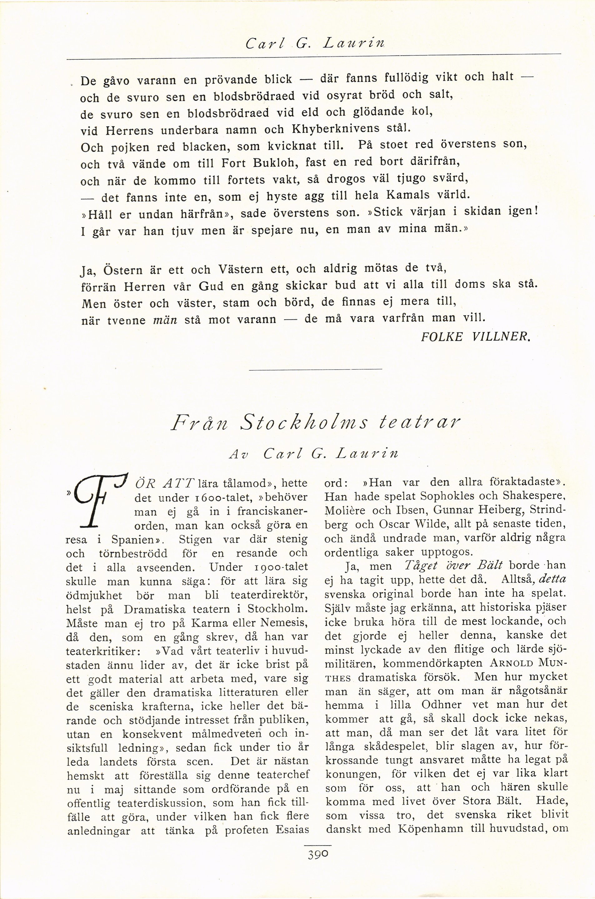 Full resolution (JPEG) - On this page / på denna sida - Sjunde häftet - Balladen om öster och väster. Av Rudyard Kipling. Översättning av Folke Villner - Från Stockholms teatrar. Av Carl G. Laurin