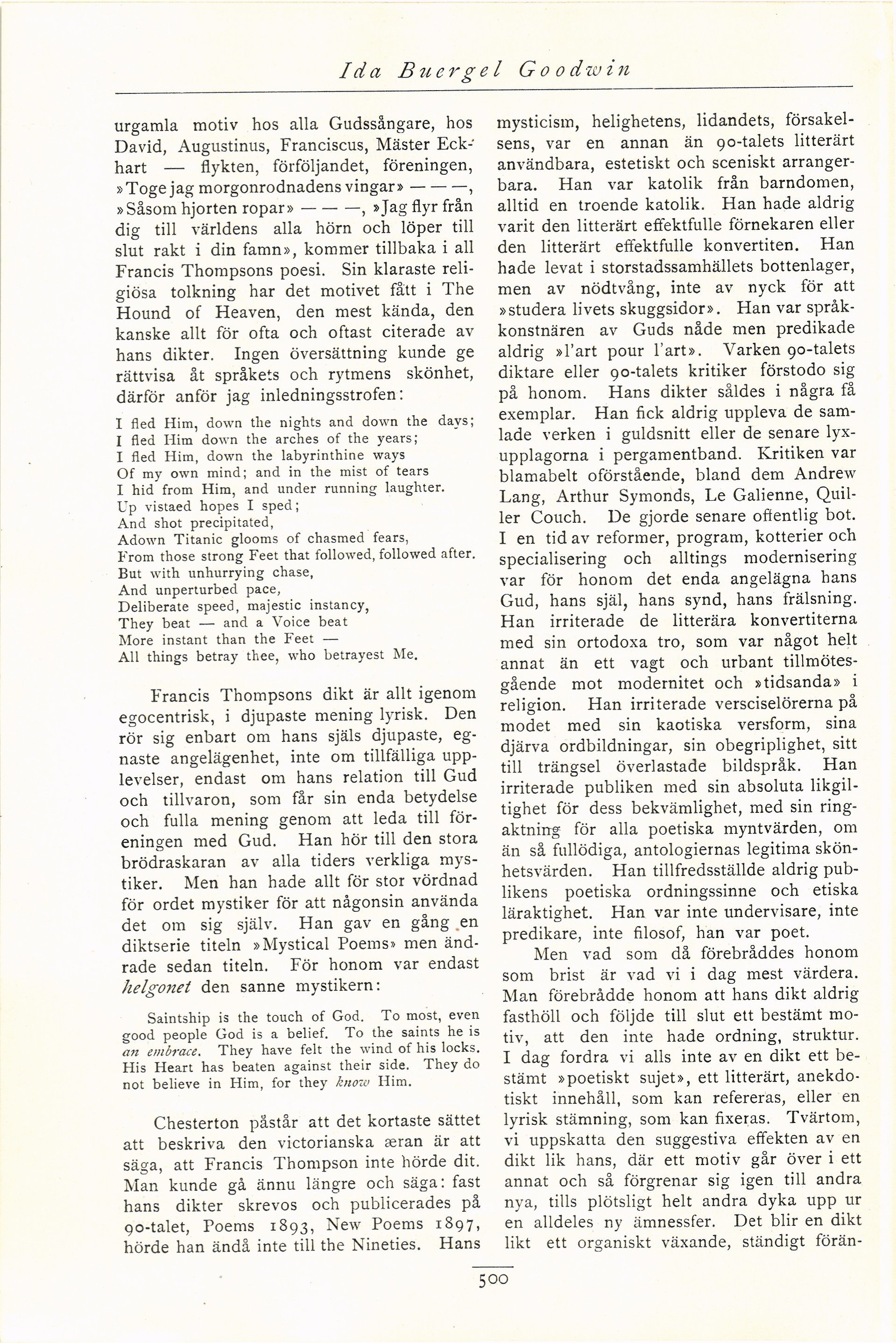 Full resolution (JPEG) - On this page / på denna sida - Nionde häftet - Francis Thompson. Av Ida Buergel Goodwin