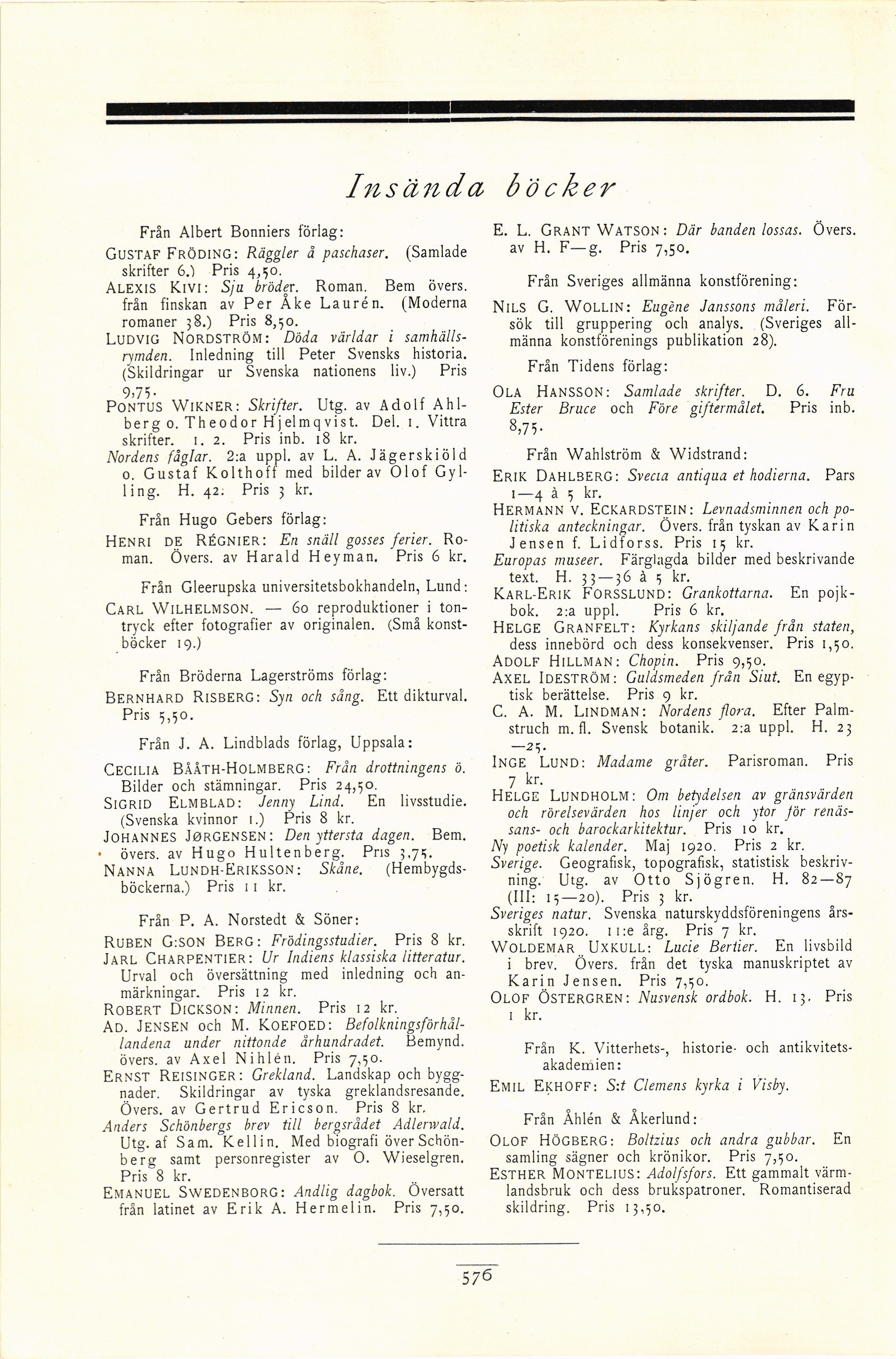 Från J. A. Lindblads förlag, Uppsala: