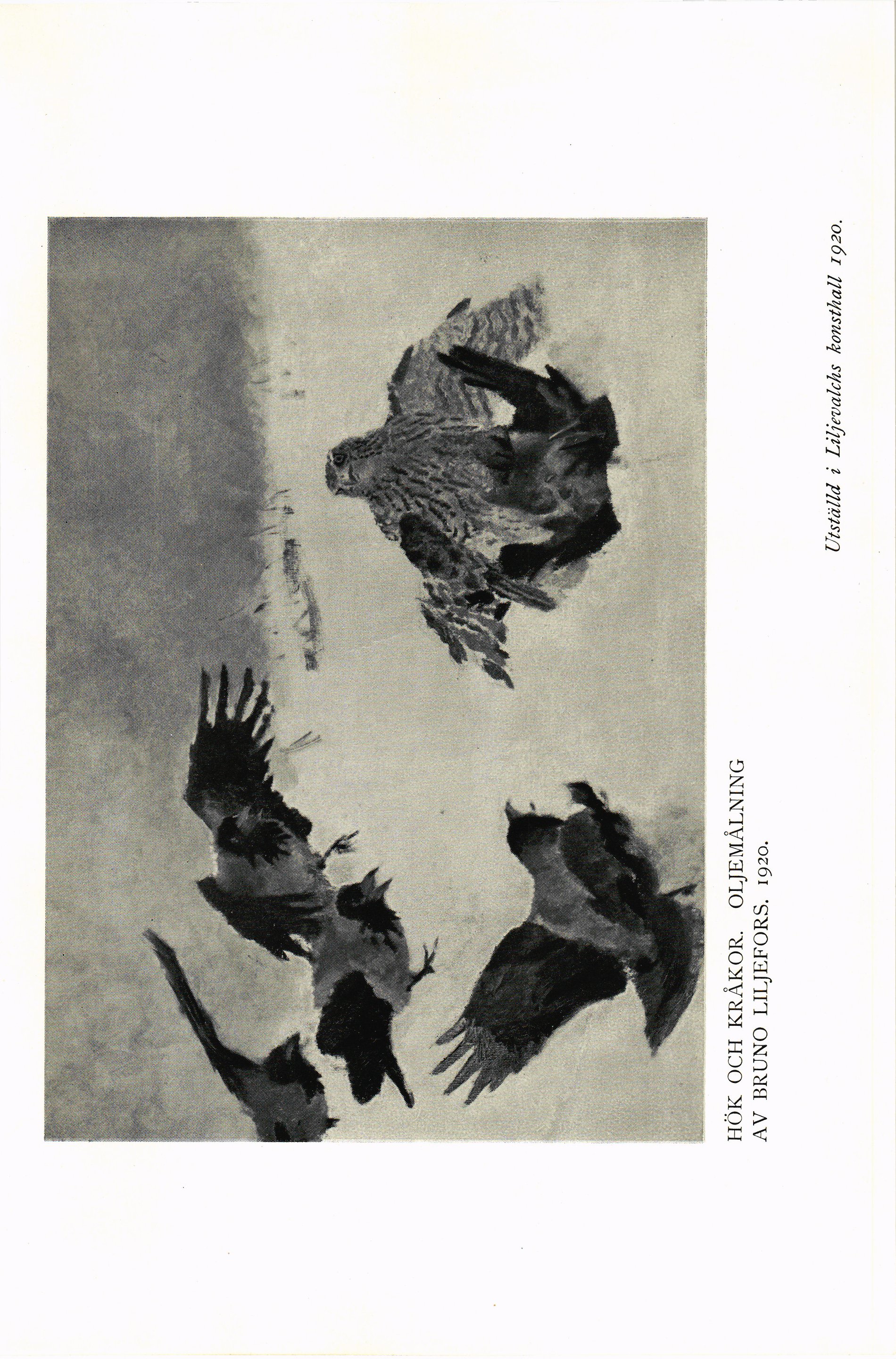 Full resolution (JPEG) - On this page / på denna sida - Elfte häftet - Hök och kråkor. Oljemålning av Bruno Liljefors. 1920