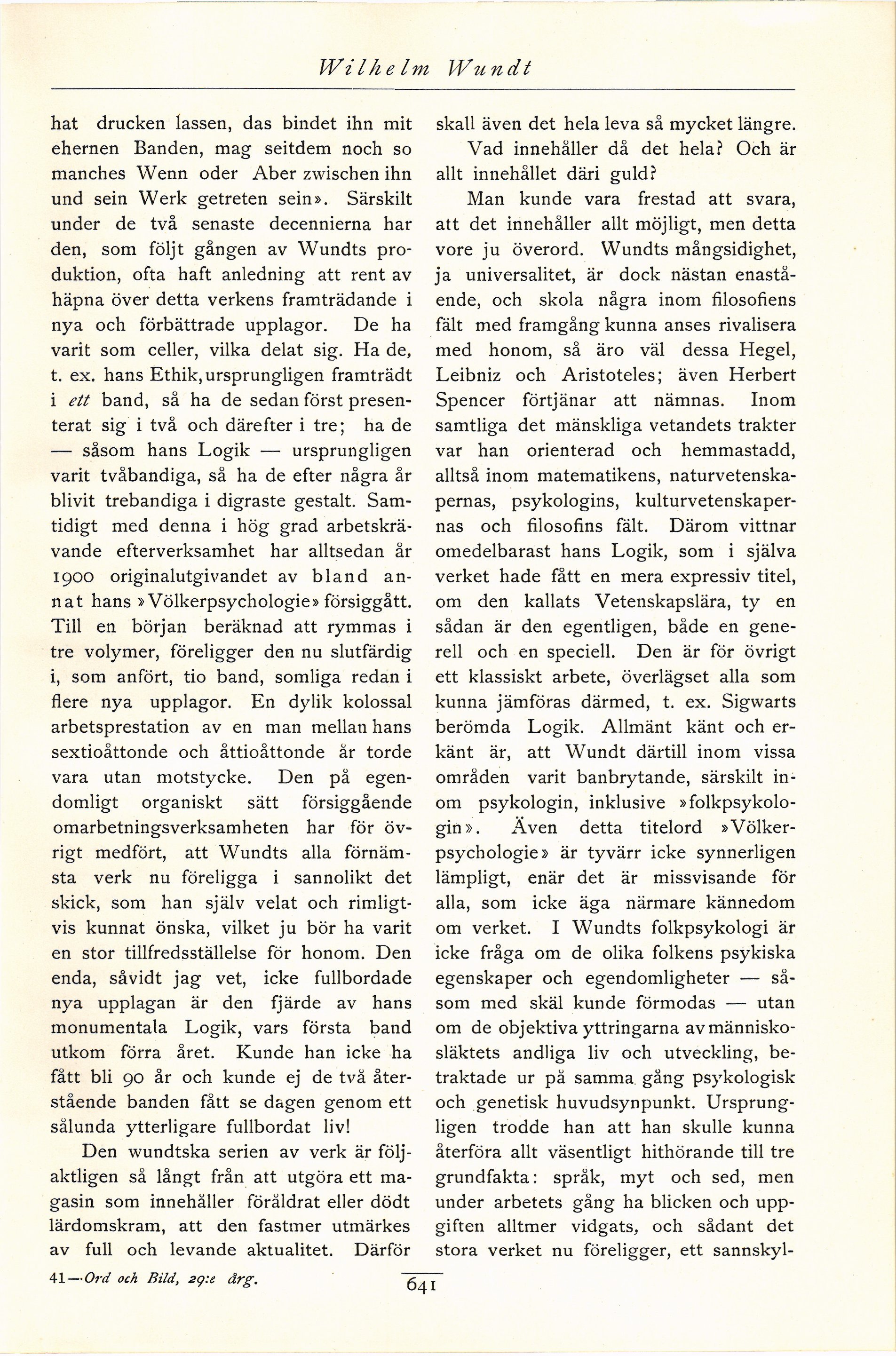 Full resolution (JPEG) - On this page / på denna sida - Tolfte häftet - Wilhelm Wundt. Av Allen Vannérus