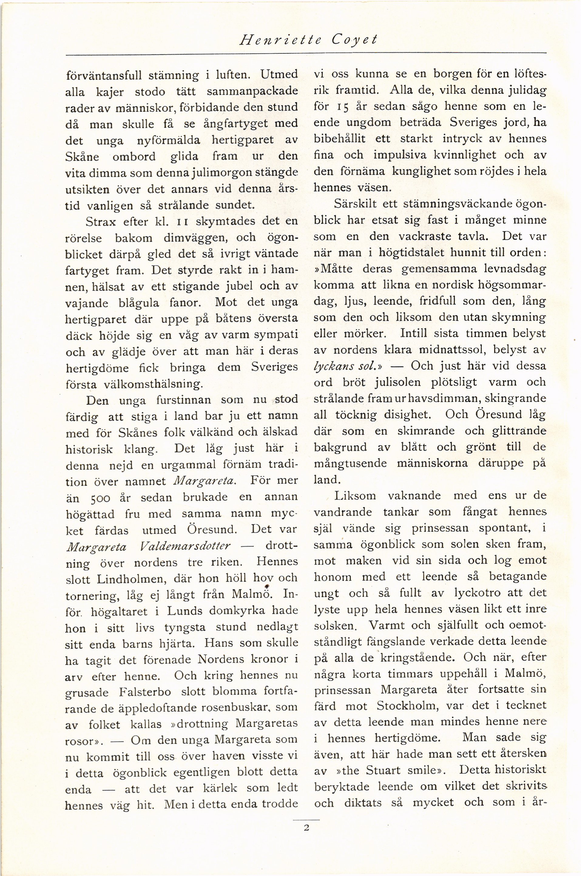 Full resolution (JPEG) - On this page / på denna sida - Första häftet - Margareta av Connaught. Kronprinsessa av Sverige — Hertiginna av Skåne. Av Henriette Coyet