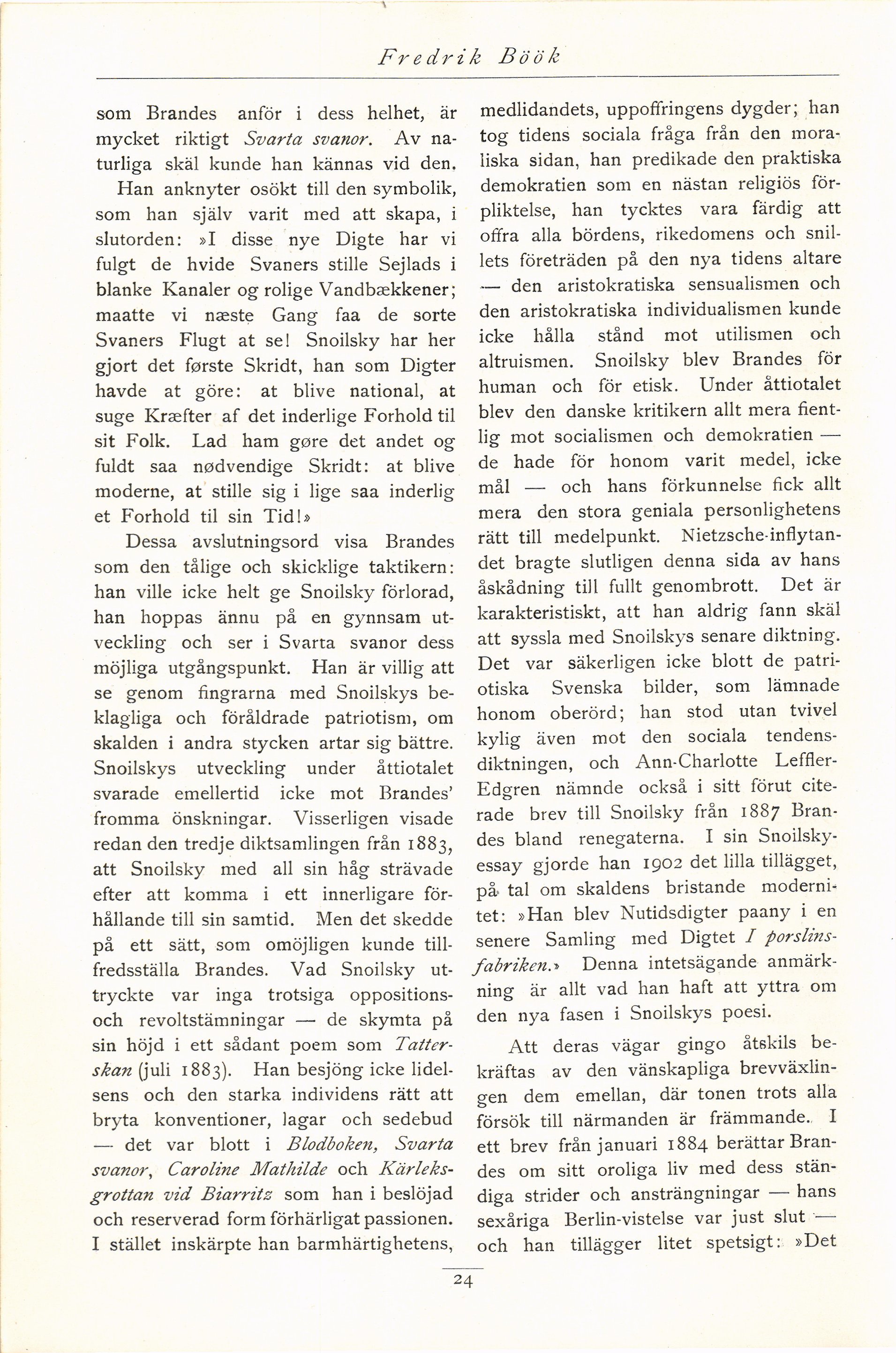 altruismen. Snoilsky blev Brandes för