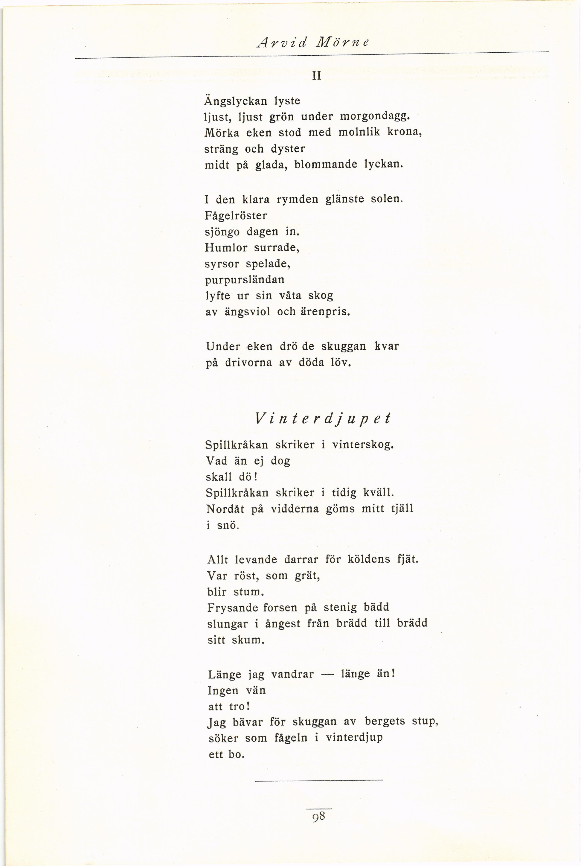 Full resolution (JPEG) - On this page / på denna sida - Andra häftet - Tre dikter. Av Arvid Mörne - Eken - Vinterdjupet