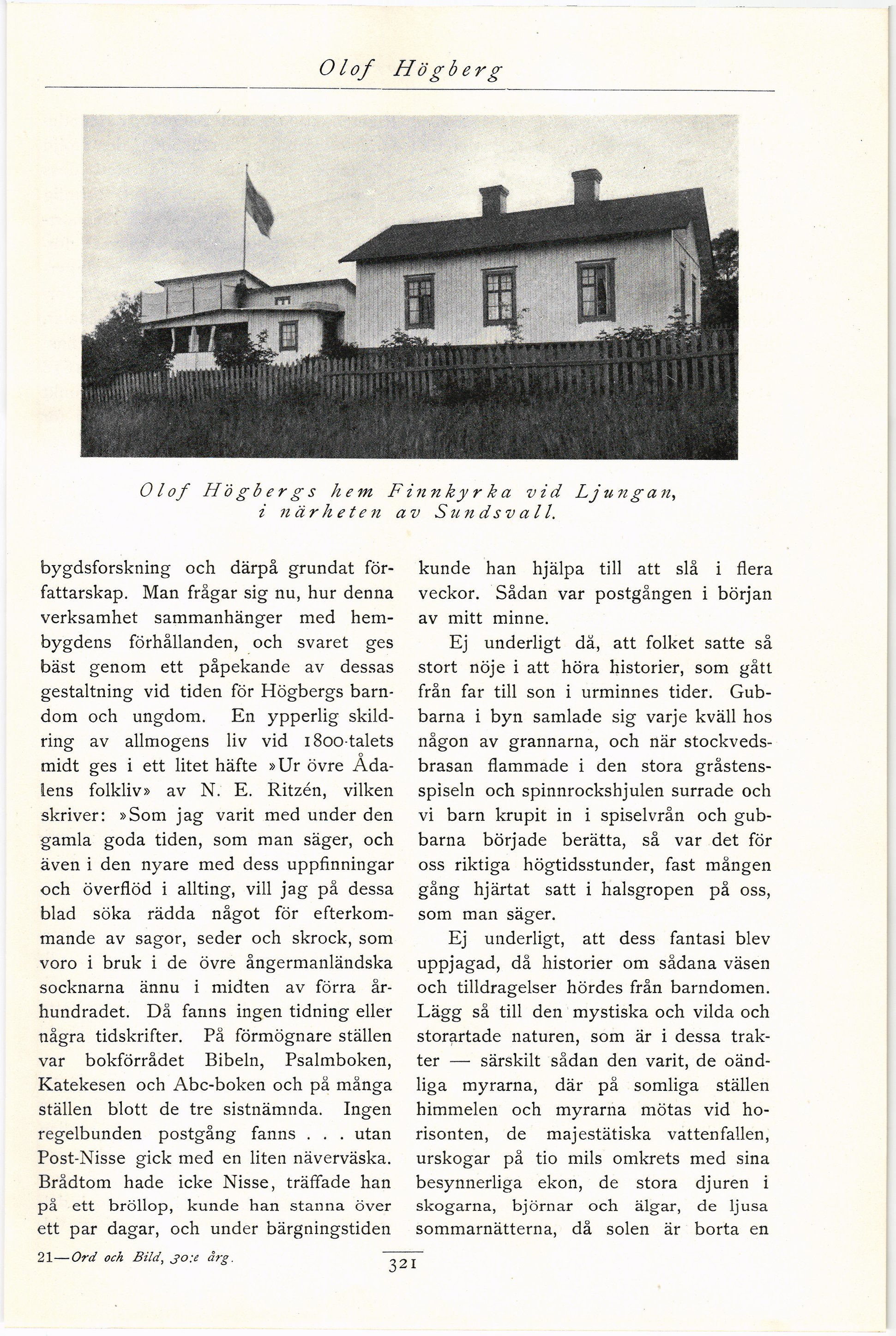 | Olof Högbergs hem Finnkyrka vid Ljungan,