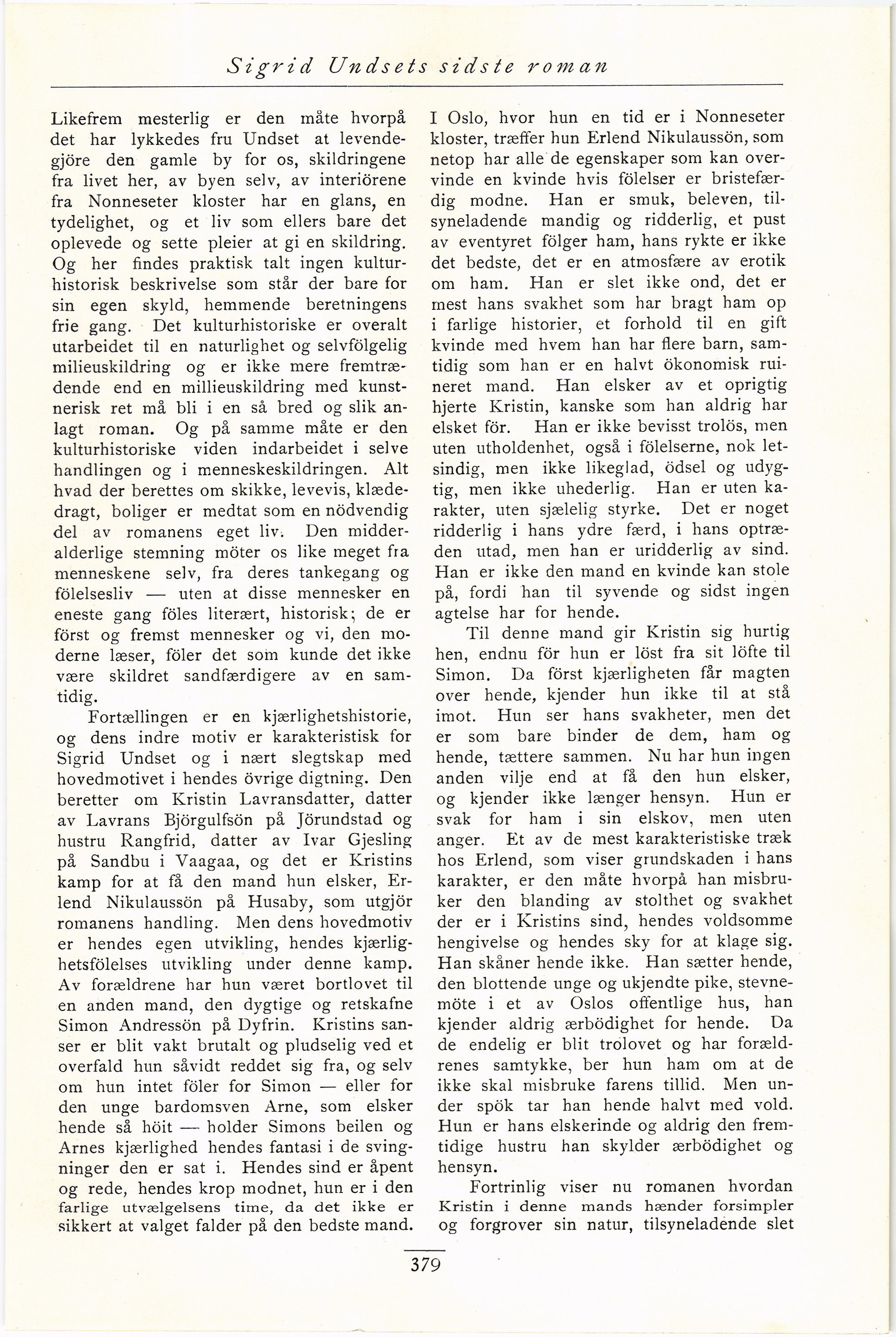 Full resolution (JPEG) - On this page / på denna sida - Sjunde häftet - Sigrid Undsets sidste roman. Av Kristian Elster