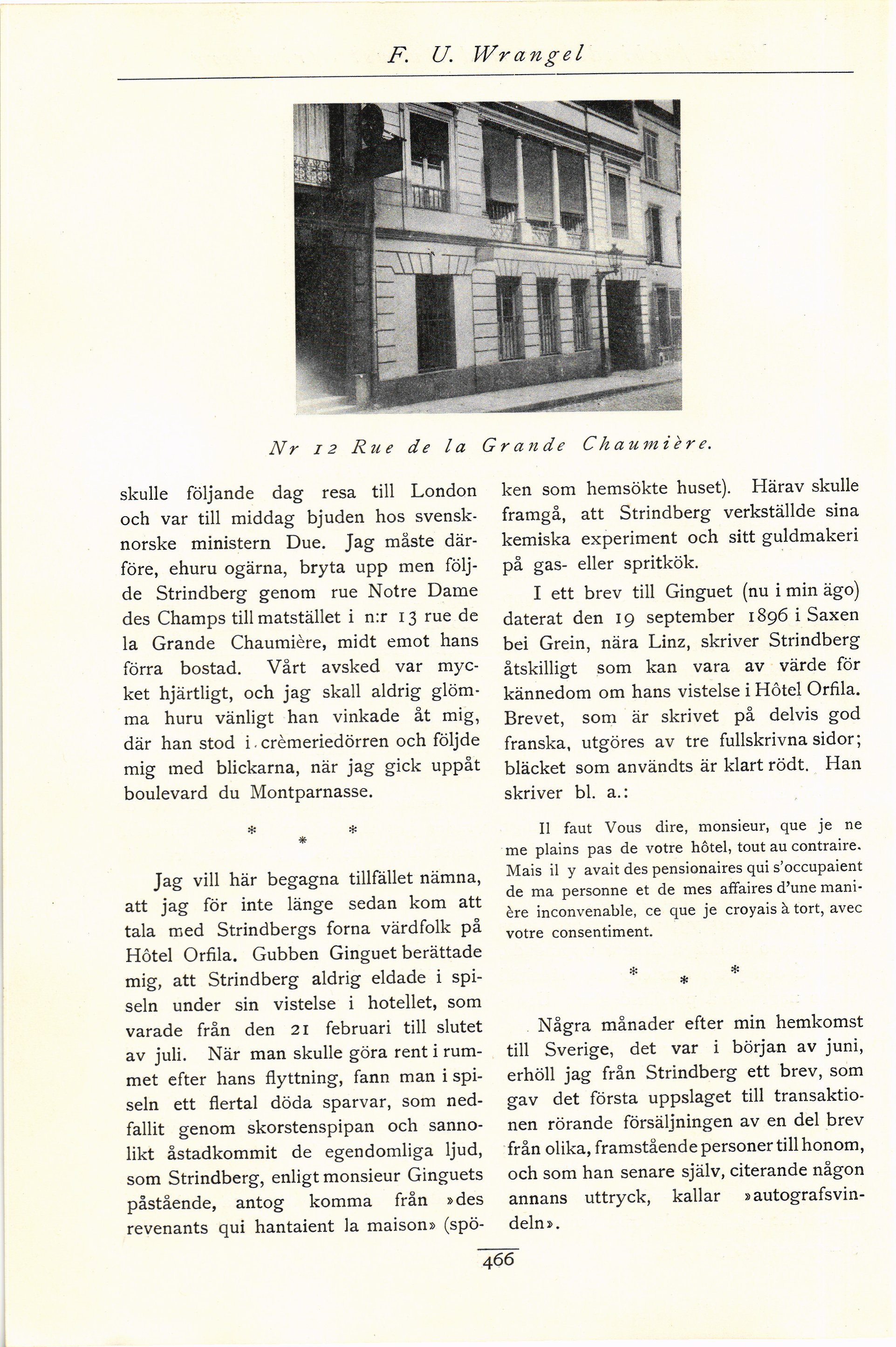 - Ett och annat om mina förbindelser med August Strindberg och om hans brevsamling. Av F. U. Wrangel
