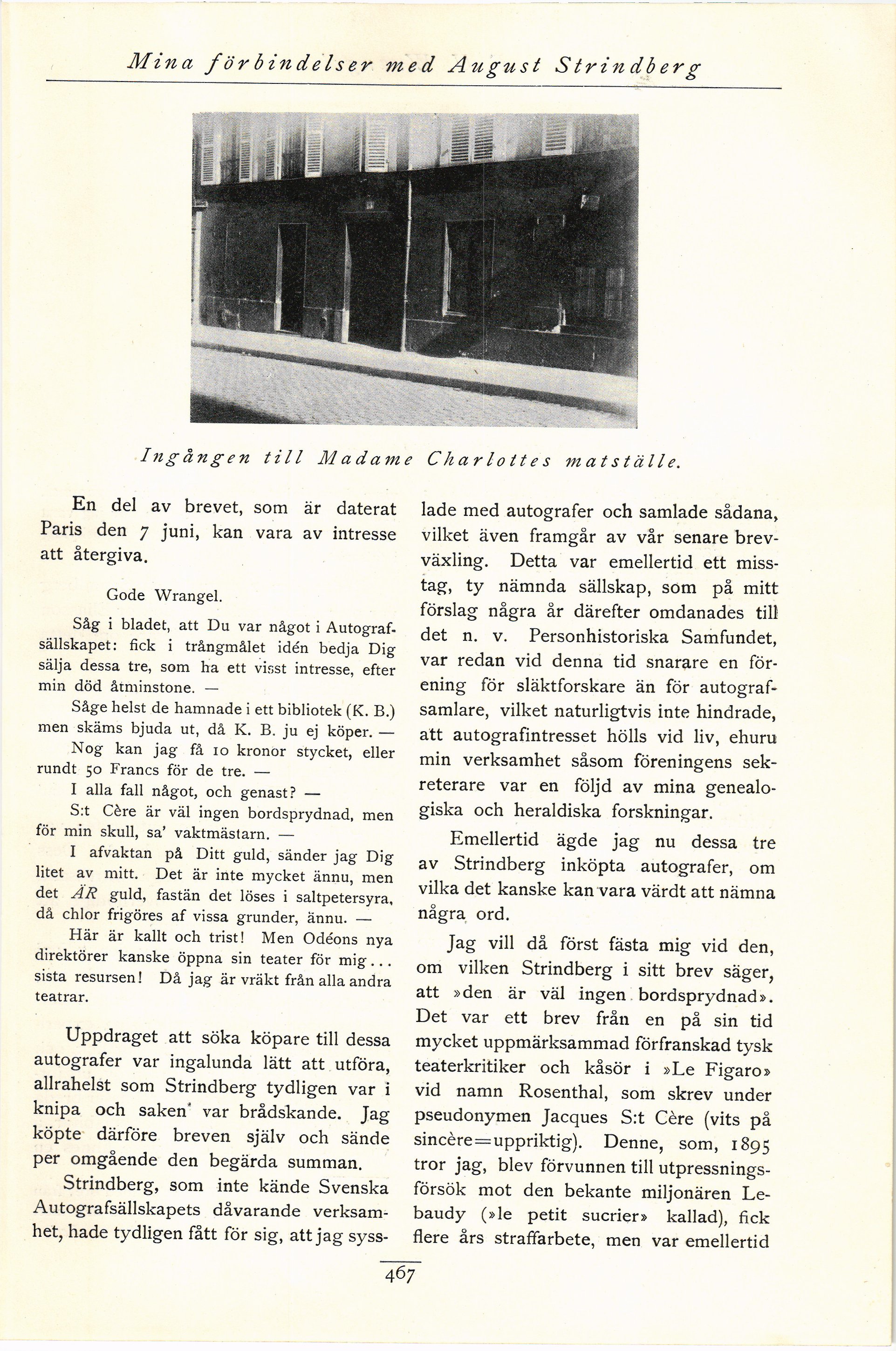 Full resolution (JPEG) - On this page / på denna sida - Nionde häftet - Ett och annat om mina förbindelser med August Strindberg och om hans brevsamling. Av F. U. Wrangel