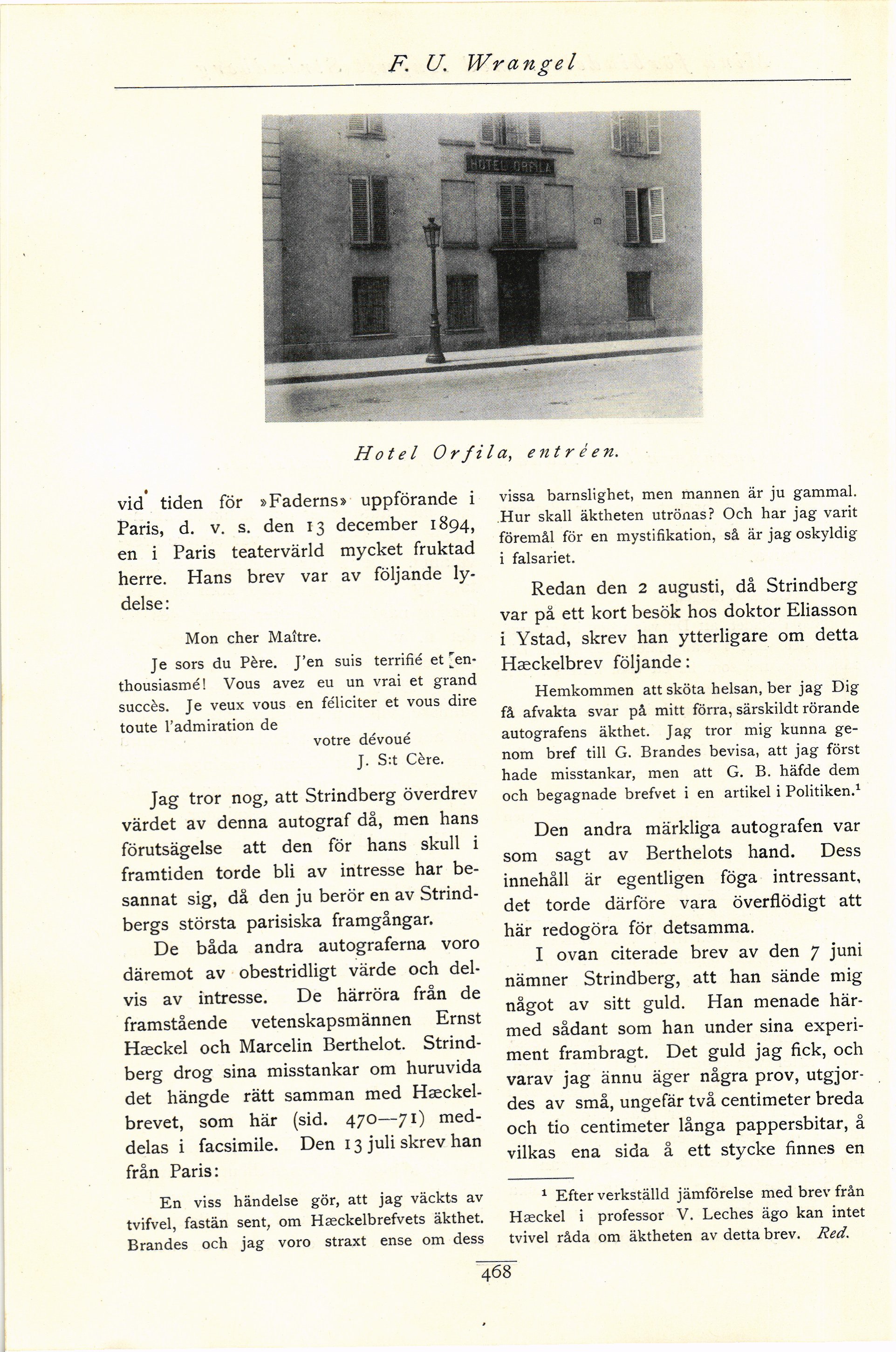 Full resolution (JPEG) - On this page / på denna sida - Nionde häftet - Ett och annat om mina förbindelser med August Strindberg och om hans brevsamling. Av F. U. Wrangel