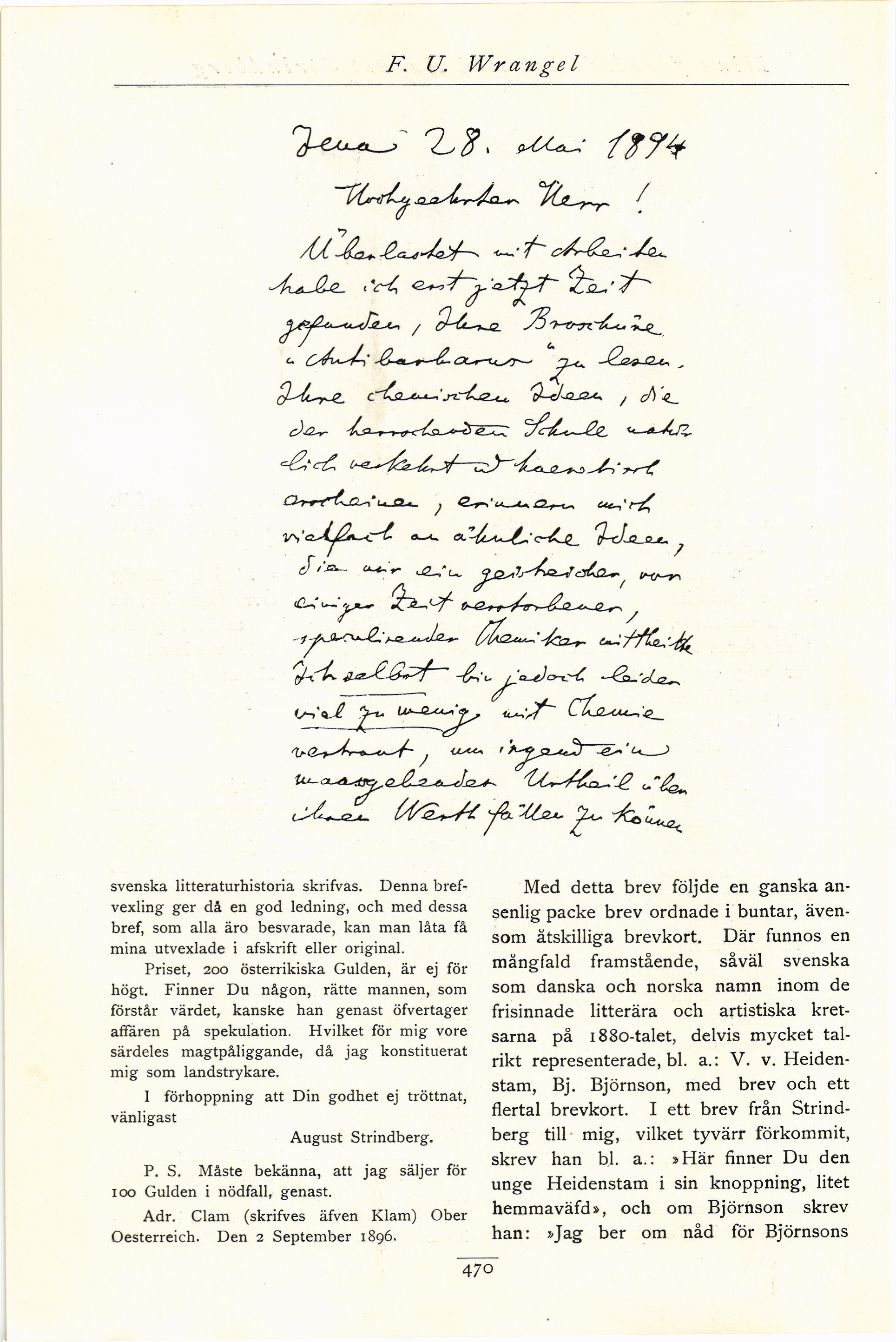 Full resolution (JPEG) - On this page / på denna sida - Nionde häftet - Ett och annat om mina förbindelser med August Strindberg och om hans brevsamling. Av F. U. Wrangel