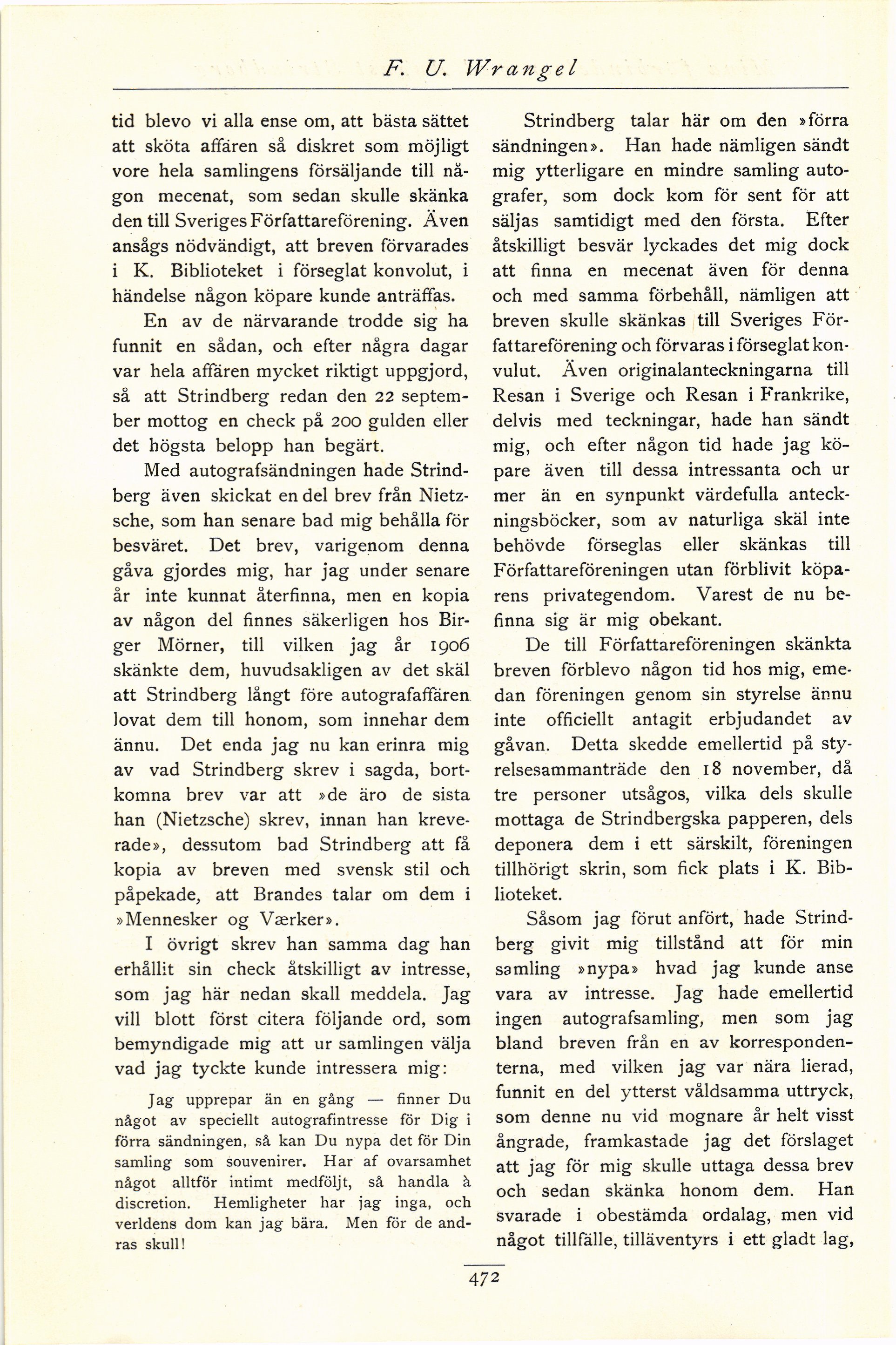 Full resolution (JPEG) - On this page / på denna sida - Nionde häftet - Ett och annat om mina förbindelser med August Strindberg och om hans brevsamling. Av F. U. Wrangel