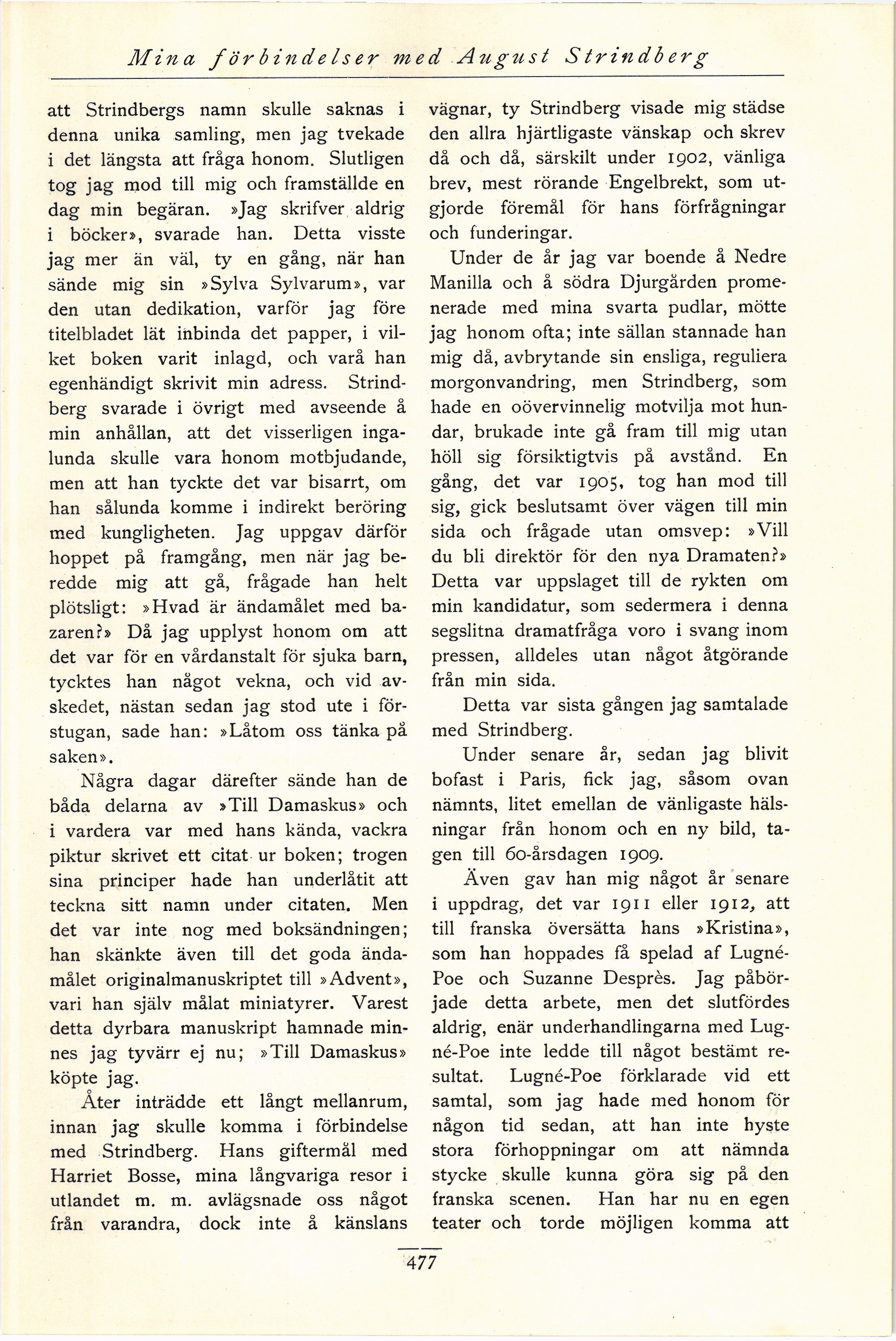 Full resolution (JPEG) - On this page / på denna sida - Nionde häftet - Ett och annat om mina förbindelser med August Strindberg och om hans brevsamling. Av F. U. Wrangel