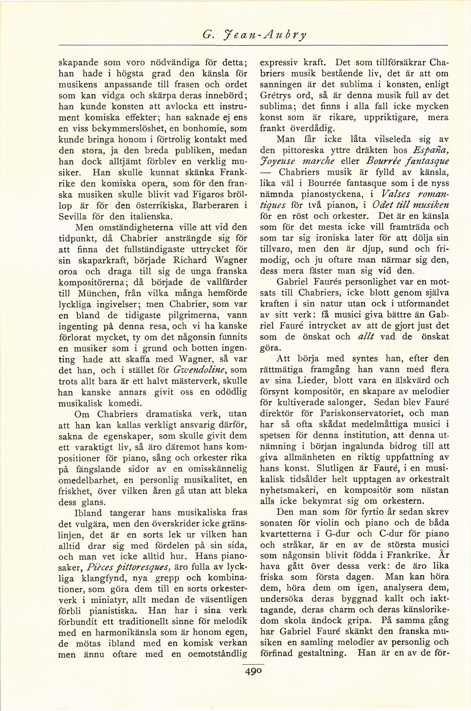 Full resolution (JPEG) - On this page / på denna sida - Nionde häftet - Nutida fransk musik. Av G. Jean-Aubrey. Översättning från författarens manuskript av A. L. W.