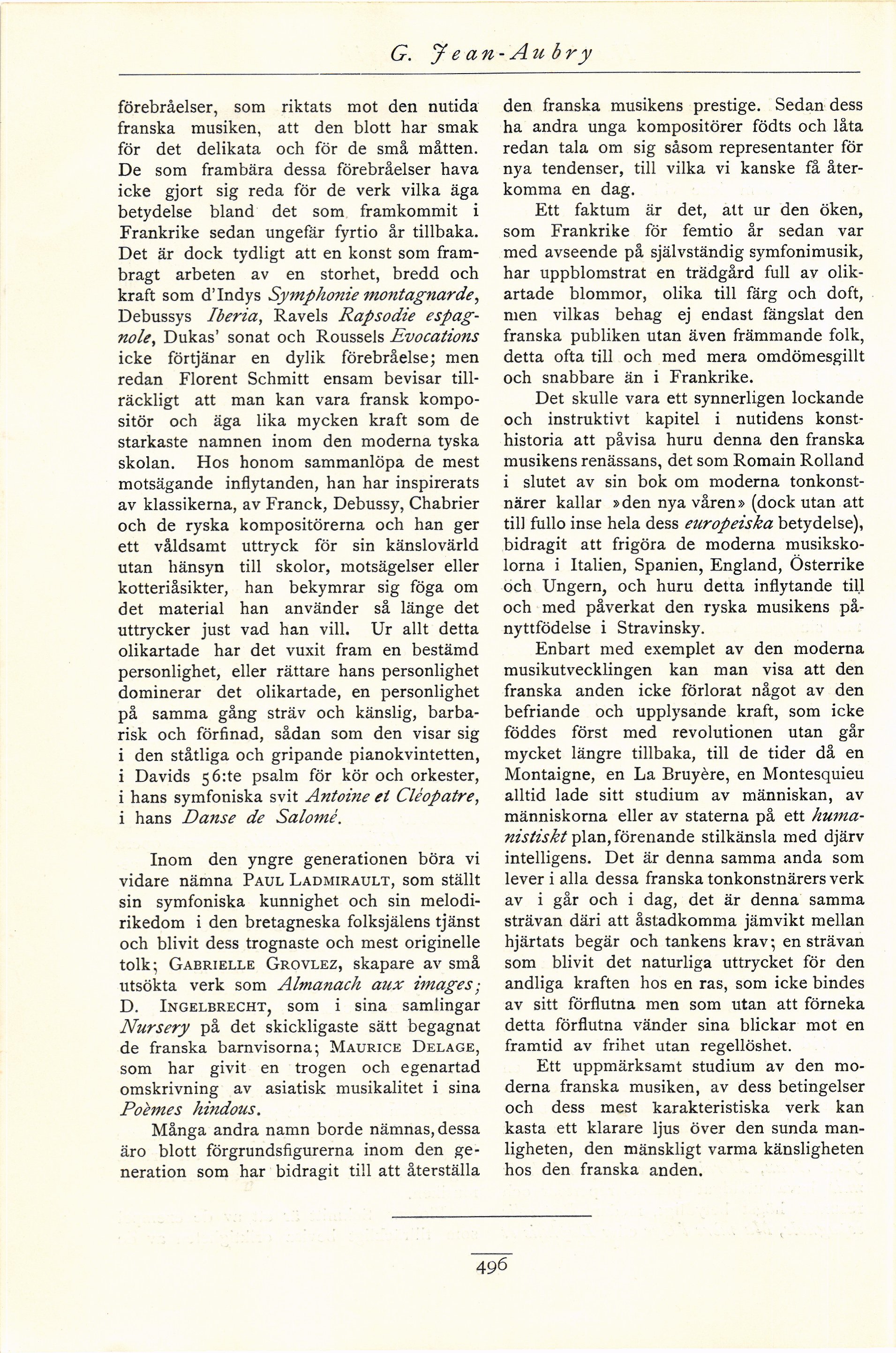 Full resolution (JPEG) - On this page / på denna sida - Nionde häftet - Nutida fransk musik. Av G. Jean-Aubrey. Översättning från författarens manuskript av A. L. W.