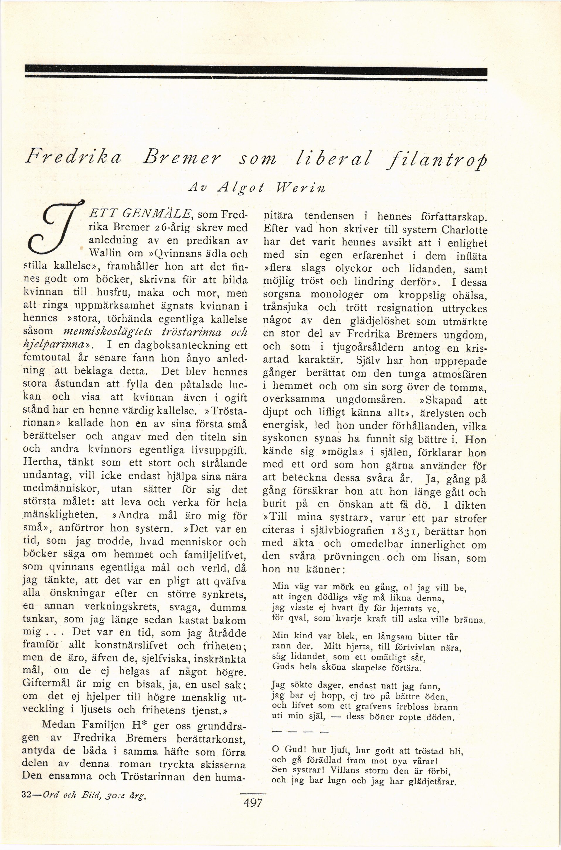 Full resolution (JPEG) - On this page / på denna sida - Nionde häftet - Fredrika Bremer som liberal filantrop. Av Algot Werin