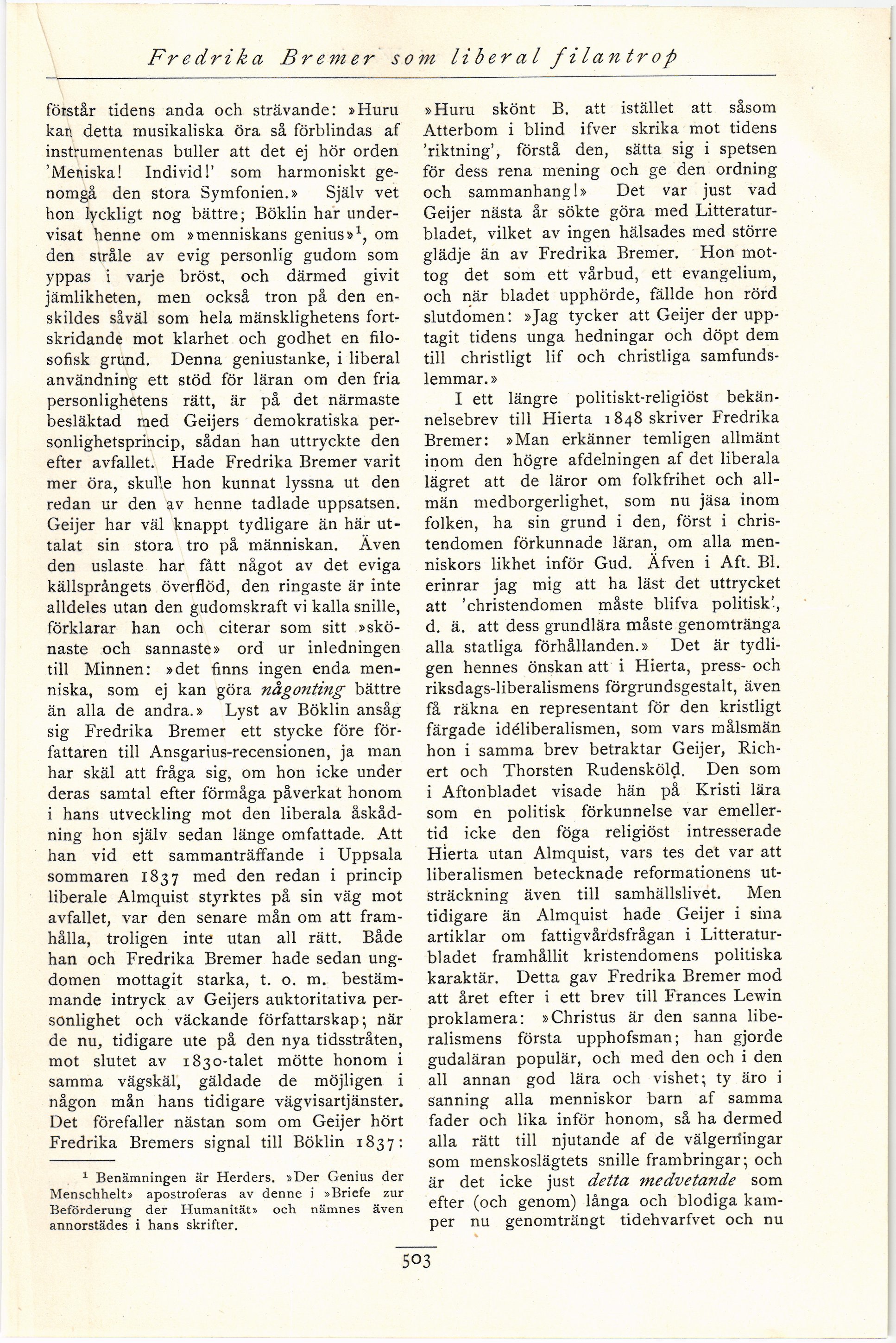Full resolution (JPEG) - On this page / på denna sida - Nionde häftet - Fredrika Bremer som liberal filantrop. Av Algot Werin