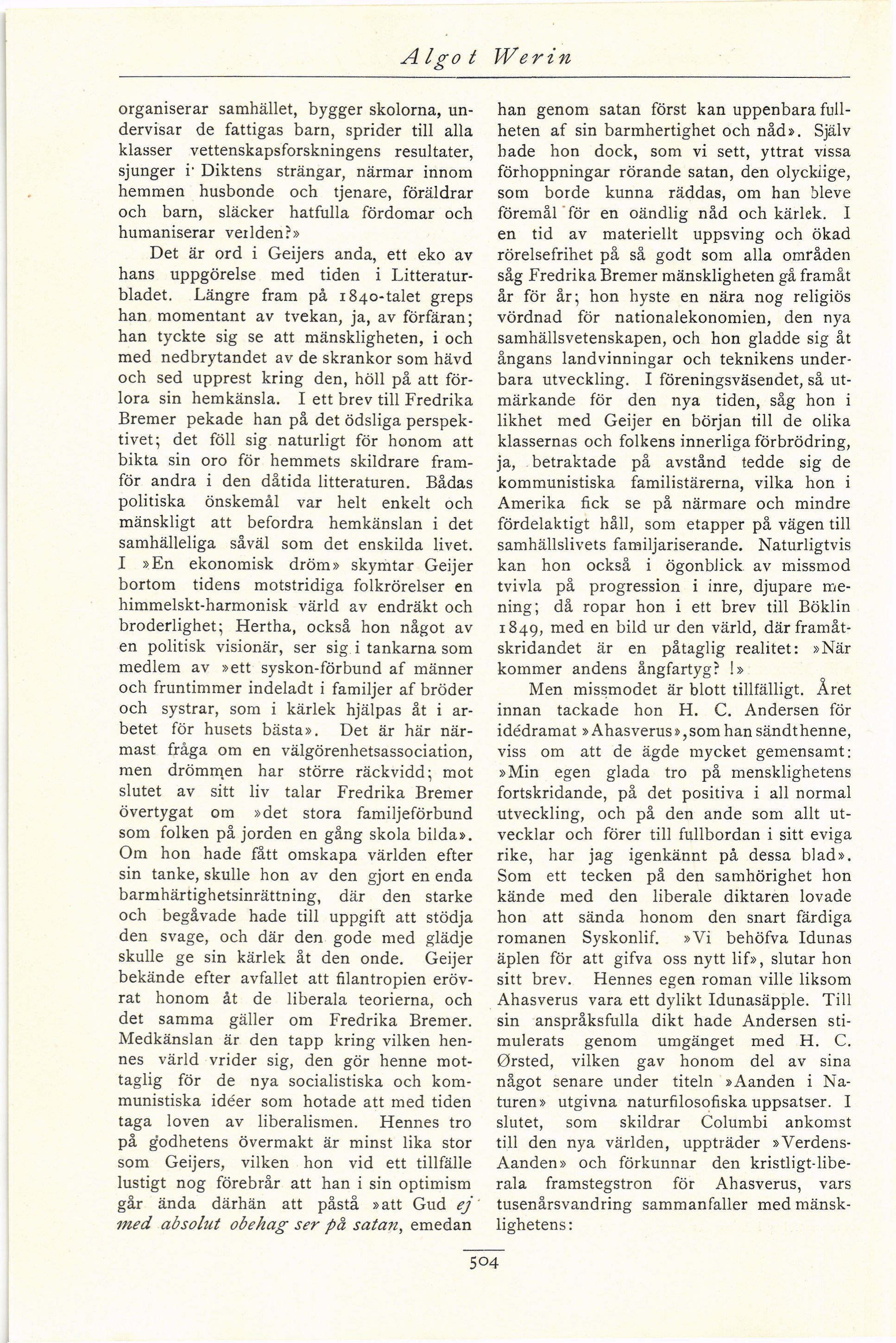 det samma gäller om Fredrika Bremer.