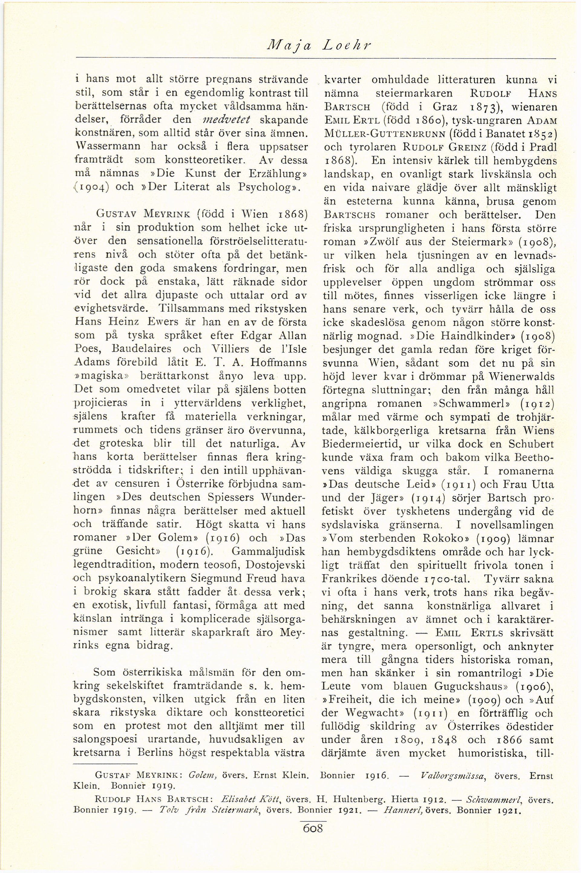 Güstaf Meyrink: Golem, övers. Ernst Klein. Bonnier ig 16. — Valborgsmässa, övers. Ernst