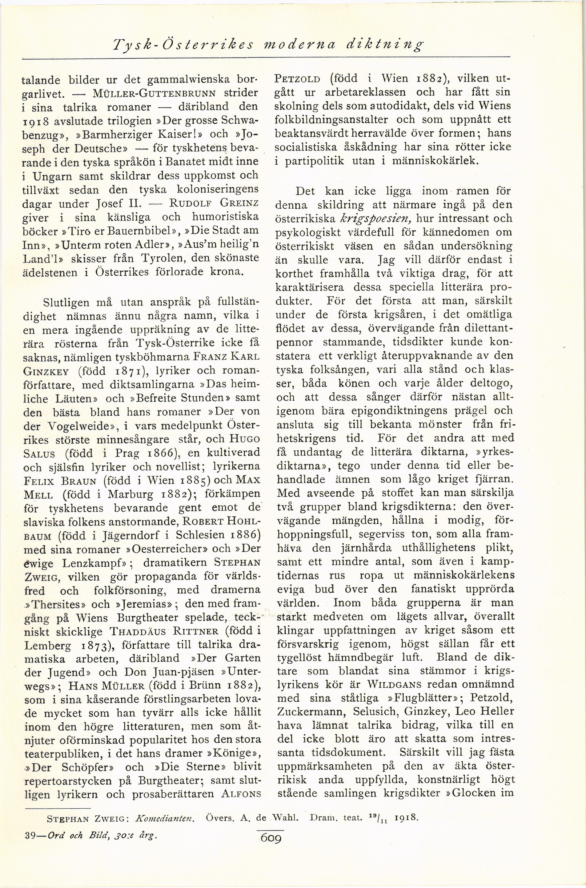 Stephan Zweig: Komedianten. Övers. A. de Wahl. Dram. teat. 19/n 1918.