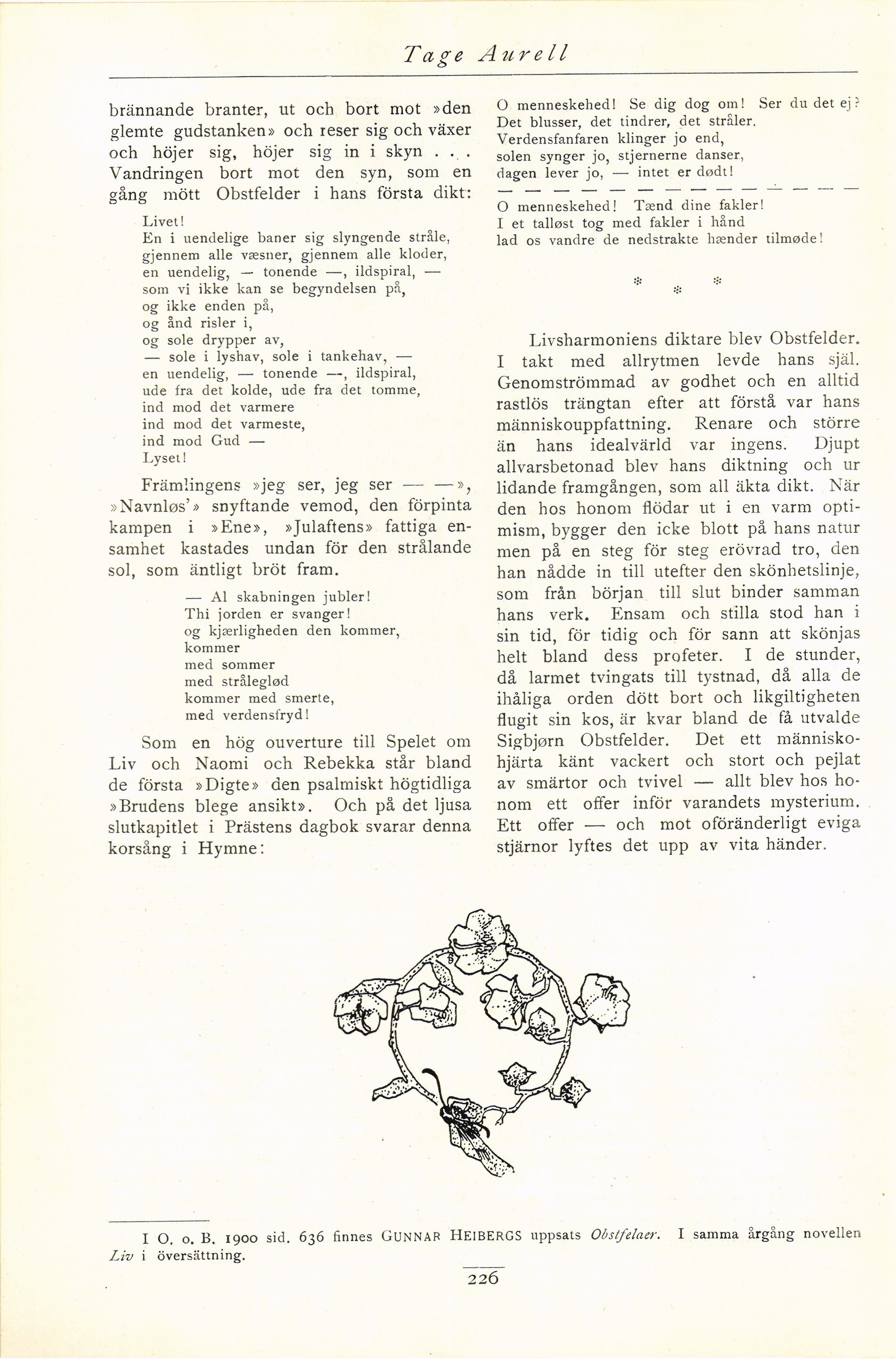 I O. o. B, 1900 sid. 636 finnes GUNNAR HEIBERGS uppsats Obstfelaer. I samma årgång novellen