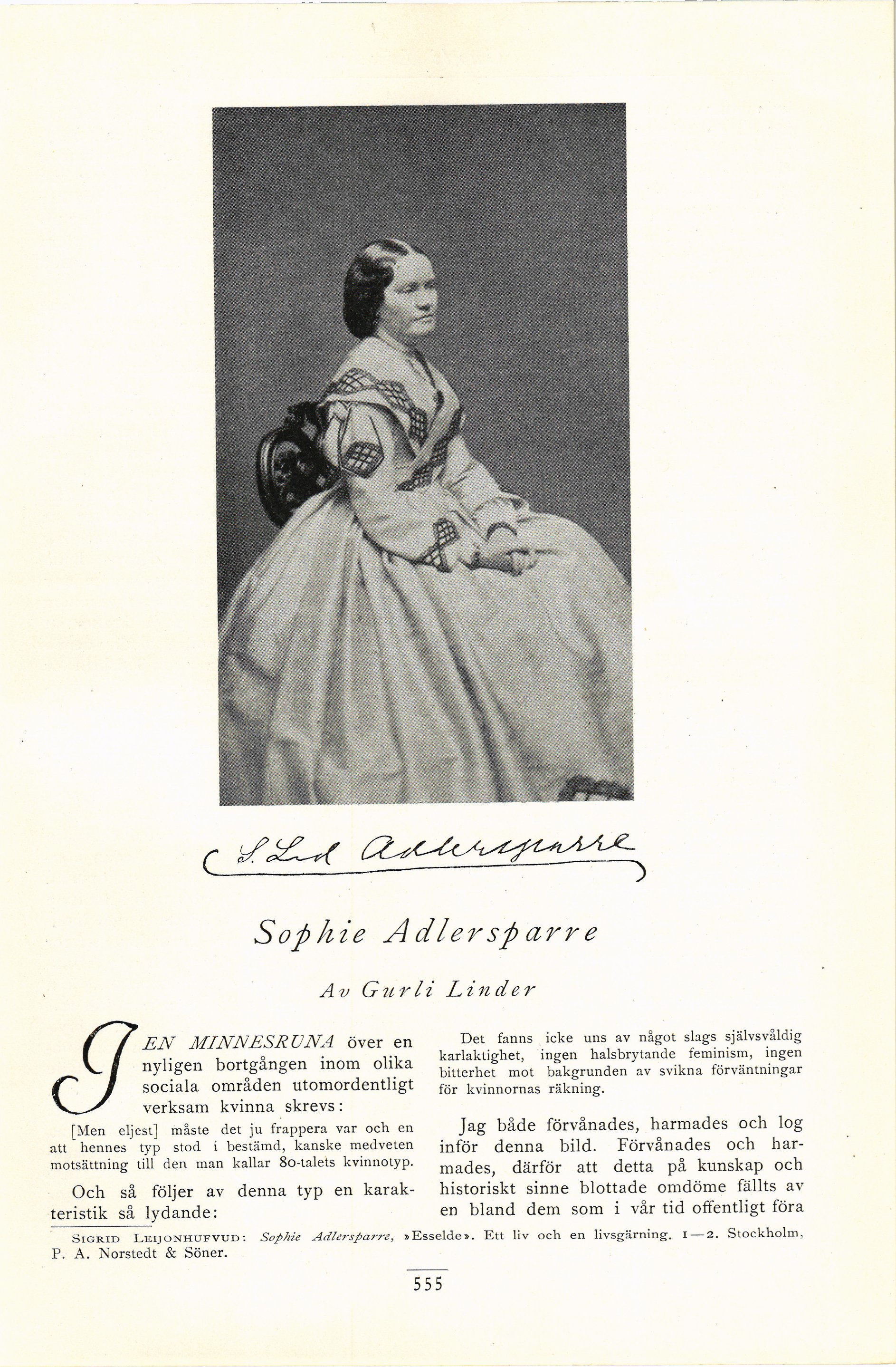 Sigrid Leijonhufvud: Sophie Adlersparre, »Esselde». Ett liv och en livsgärning, i — 2. Stockholm,