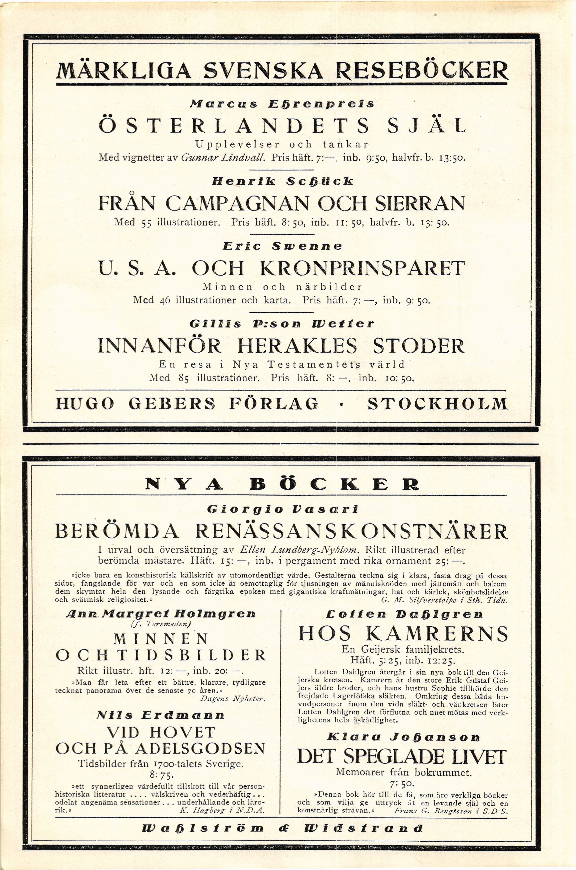 Med 46 illustrationer och karta. Pris häft. 7: —, inb. 9: 50.