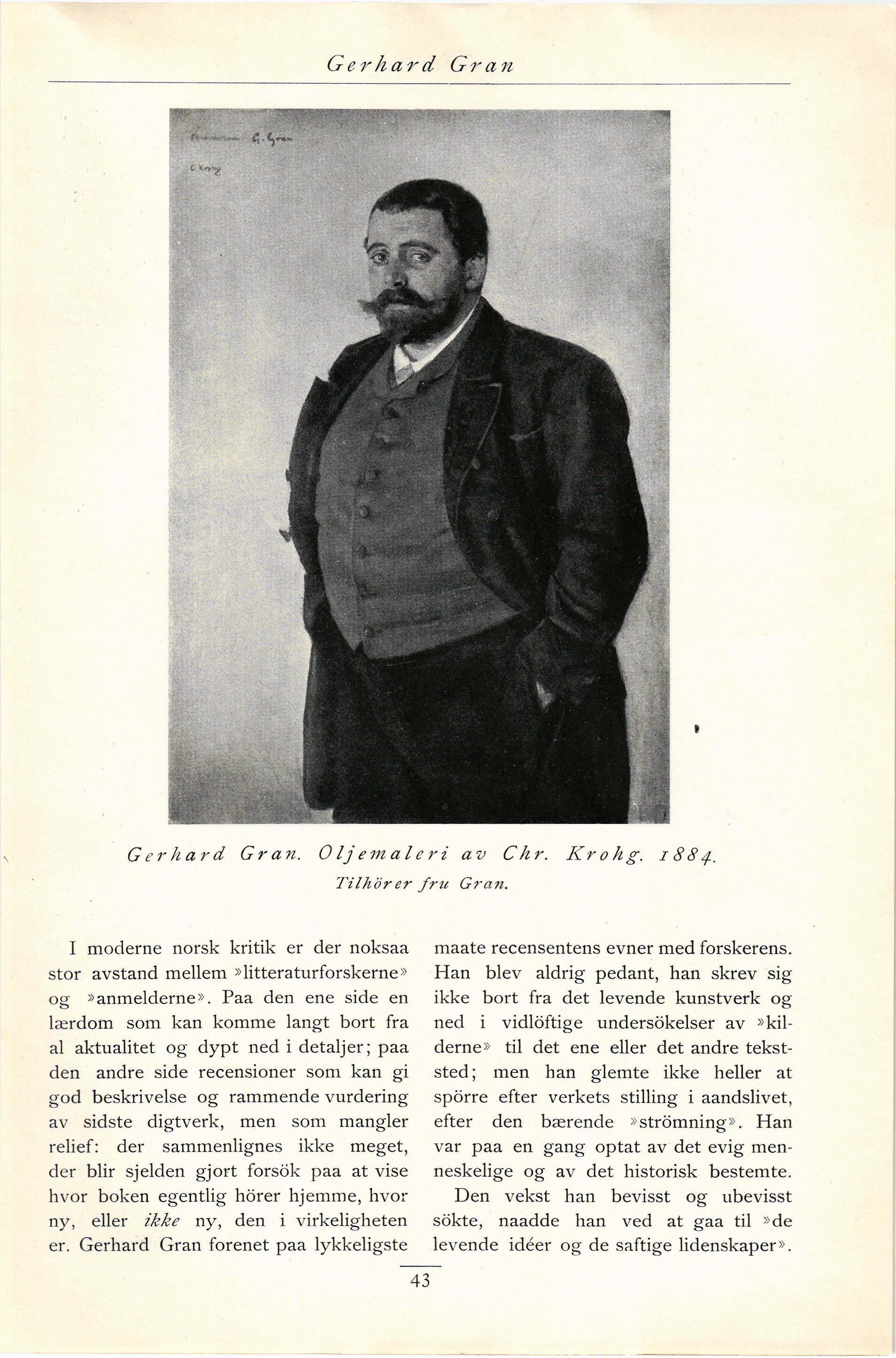 Gerhard Gran. Oljemaleri av Chr. Krohg. 188<‡.