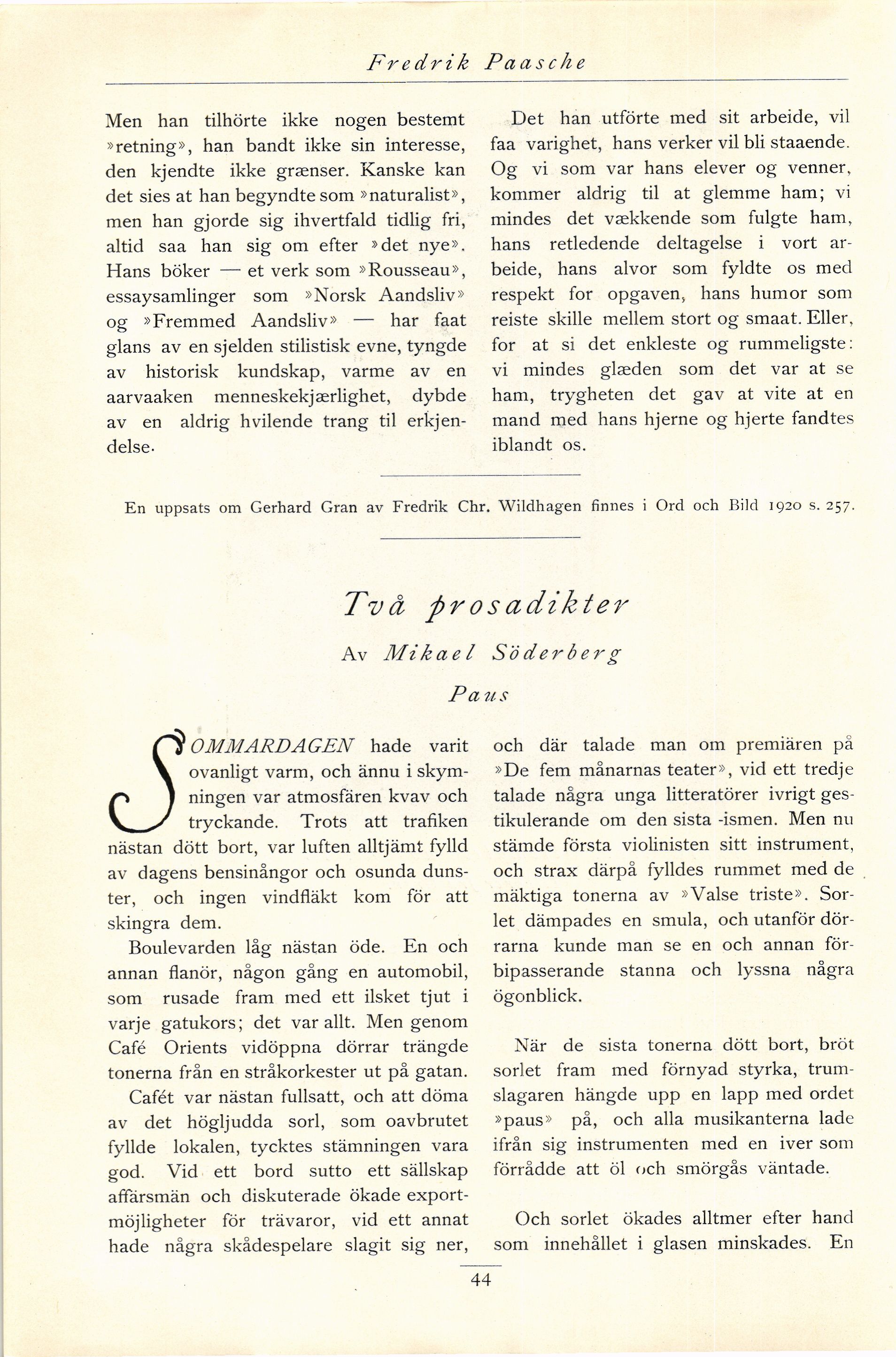 Full resolution (JPEG) - On this page / på denna sida - Första häftet - Gerhard Gran († 8 april 1925). Av Fredrik Paasche - Två prosadikter. Av Mikael Söderberg - Paus