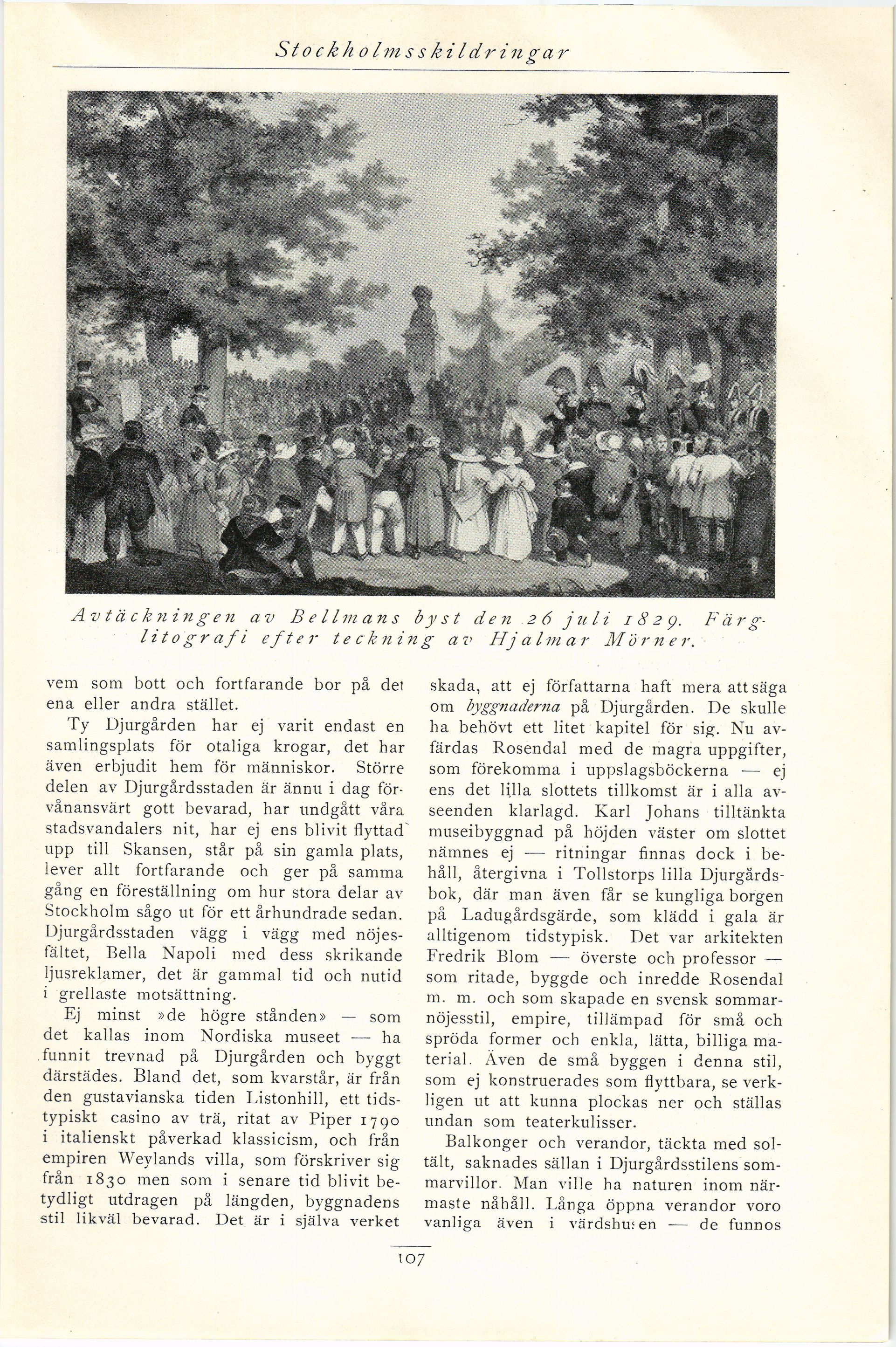 Färglitografi efter teckning av Hjalmar Mörner.