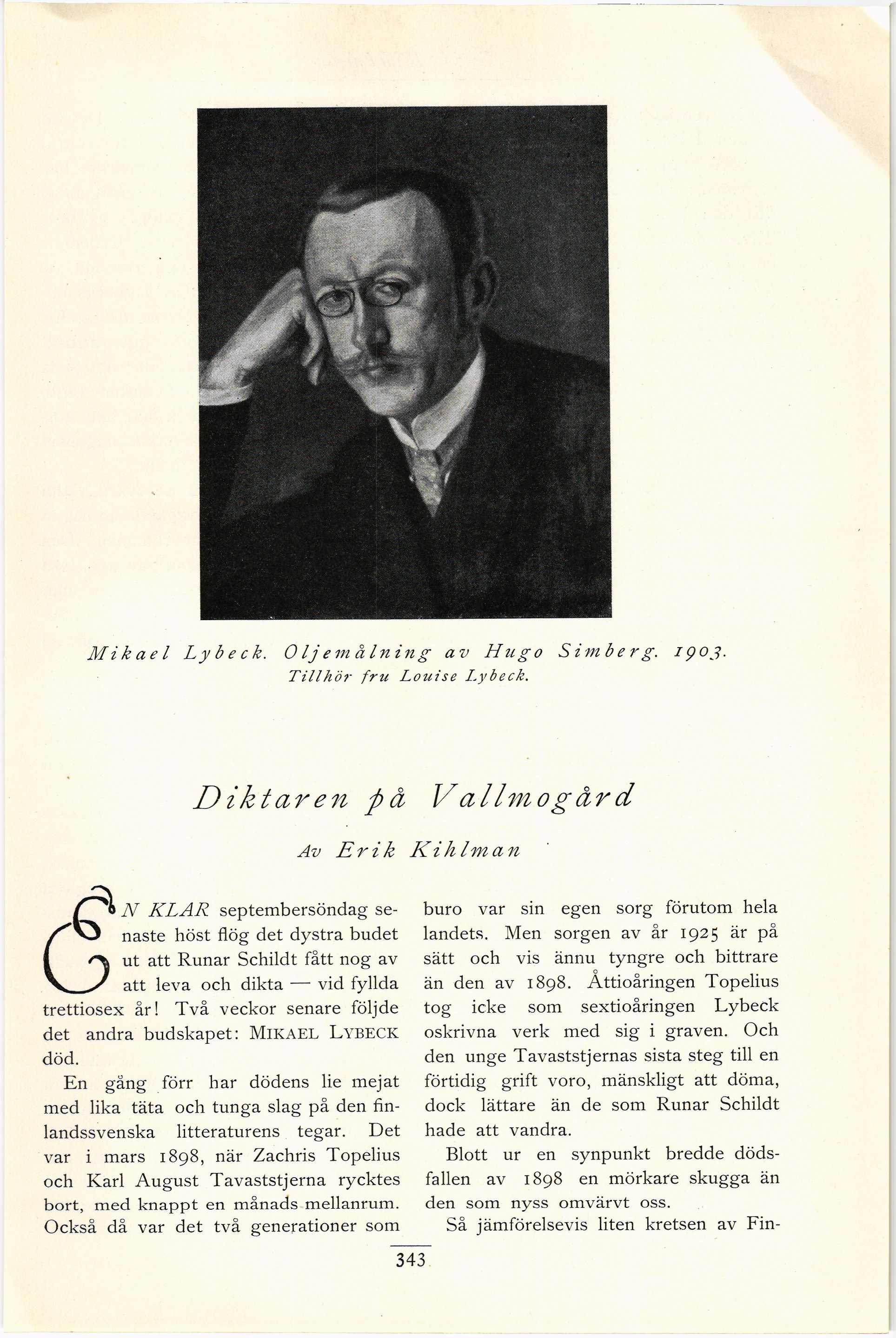 Mikael Lybeck. Oljemålning av Htigo S i m b e r g. ipoj.