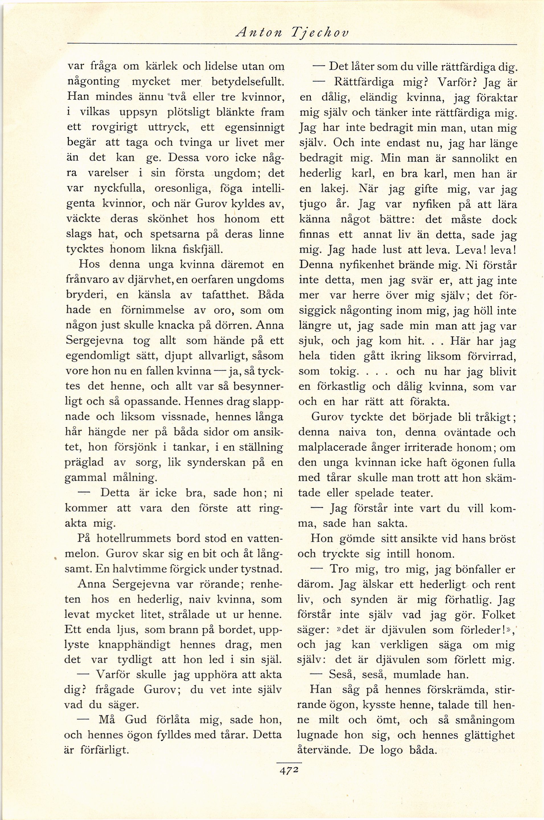 Full resolution (JPEG) - On this page / på denna sida - Åttonde häftet - Damen med den lilla hunden. Av Anton Tjechov. Från ryskan av W. Söderhjelm