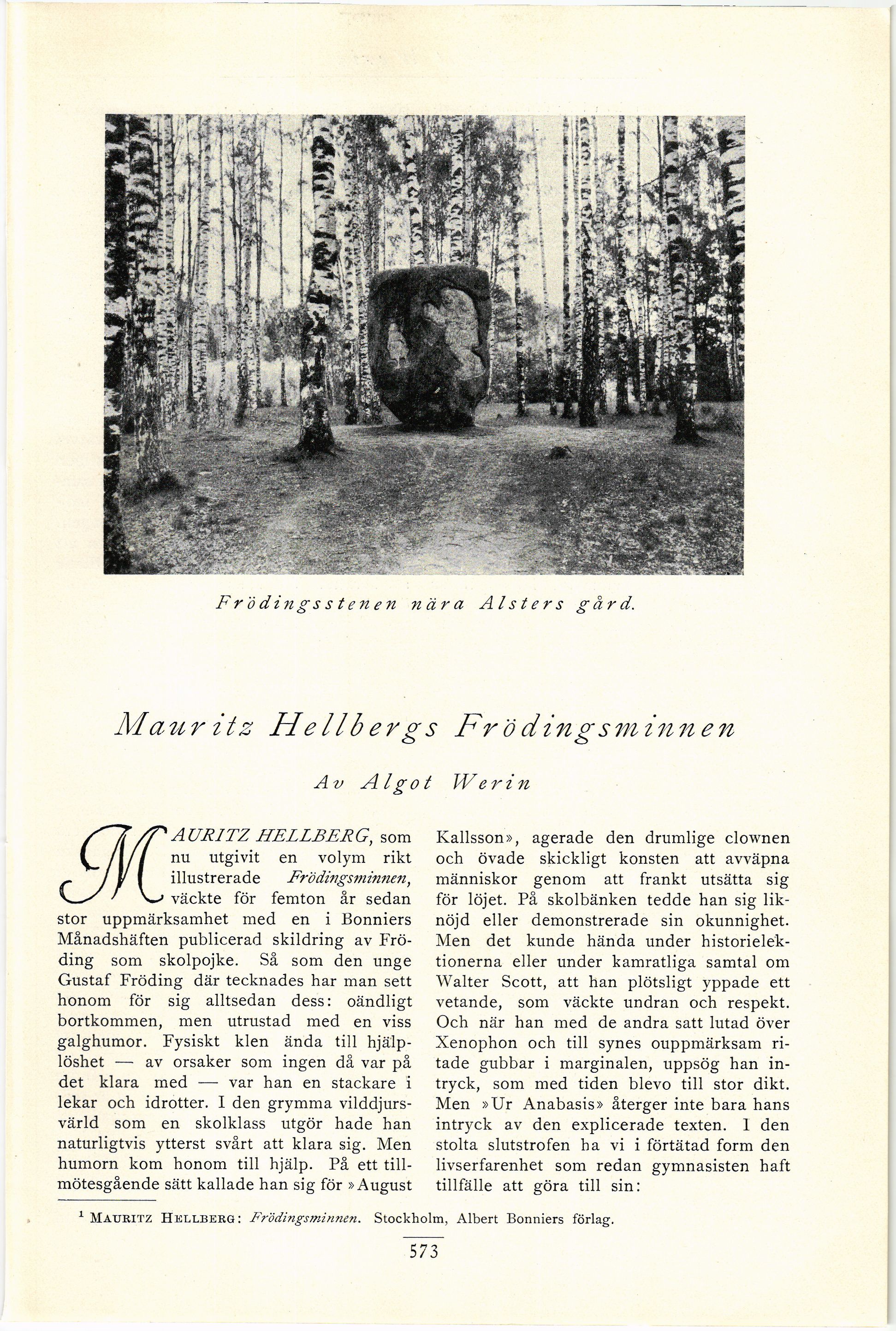 1 Mauritz Hellberg: Frödingsminnen. Stockholm, Albert Bonniers förlag.
