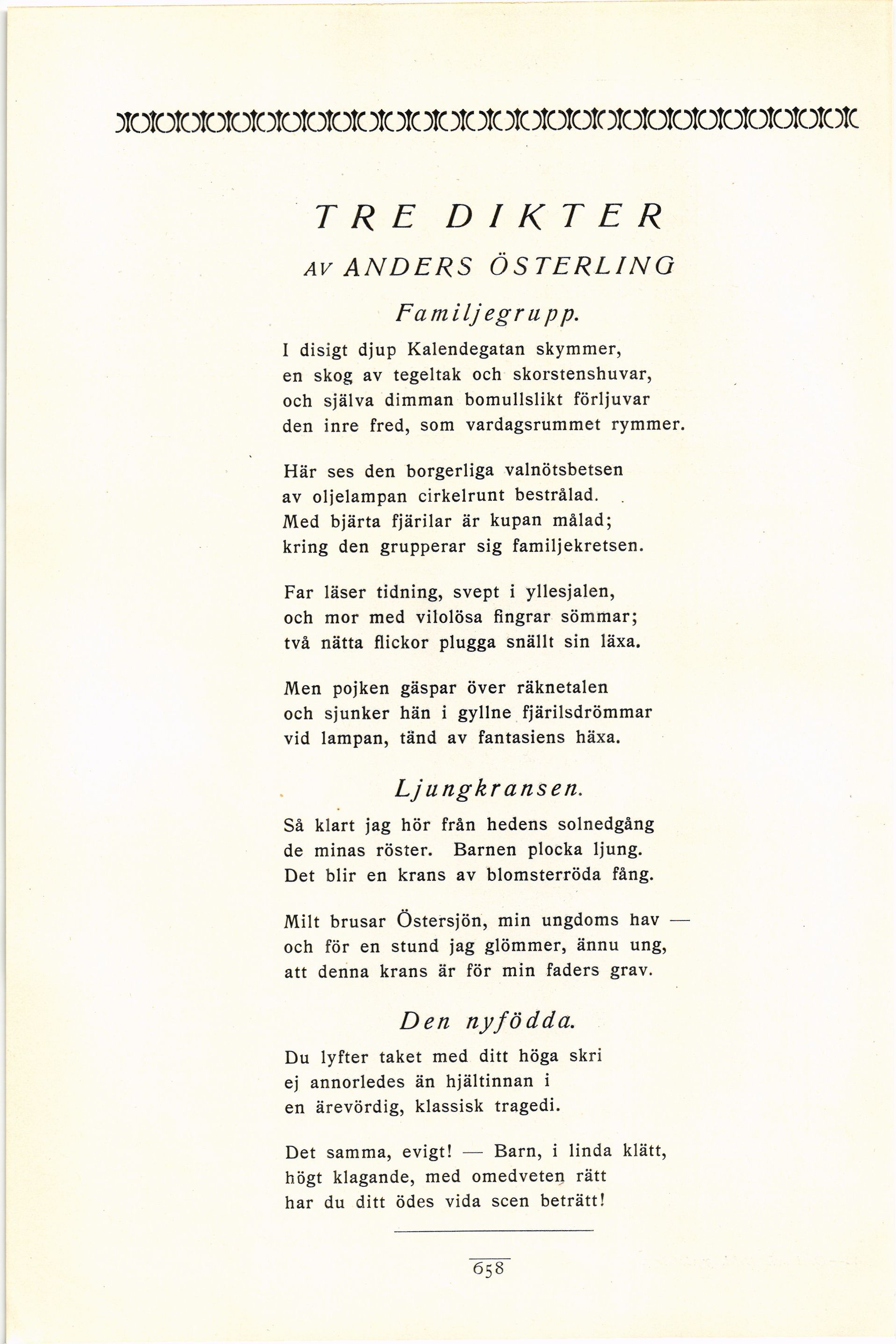 Full resolution (JPEG) - On this page / på denna sida - Elfte häftet - Tre dikter. Av Anders Österling - Familjegrupp - Ljungkransen - Den nyfödda