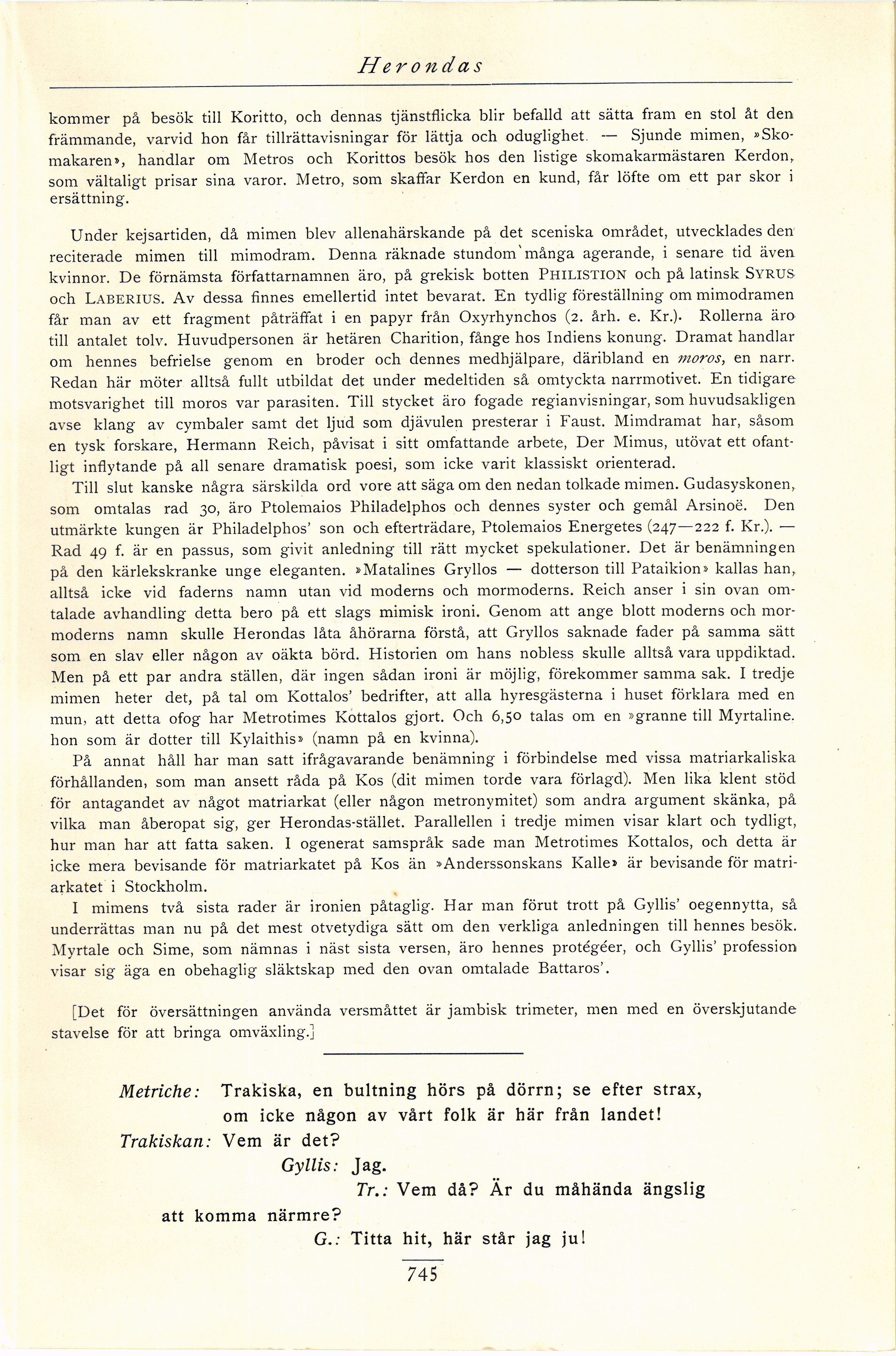 vilka man åberopat sig, ger Herondas-stället. Parallellen i tredje mimen visar klart och tydligt,
