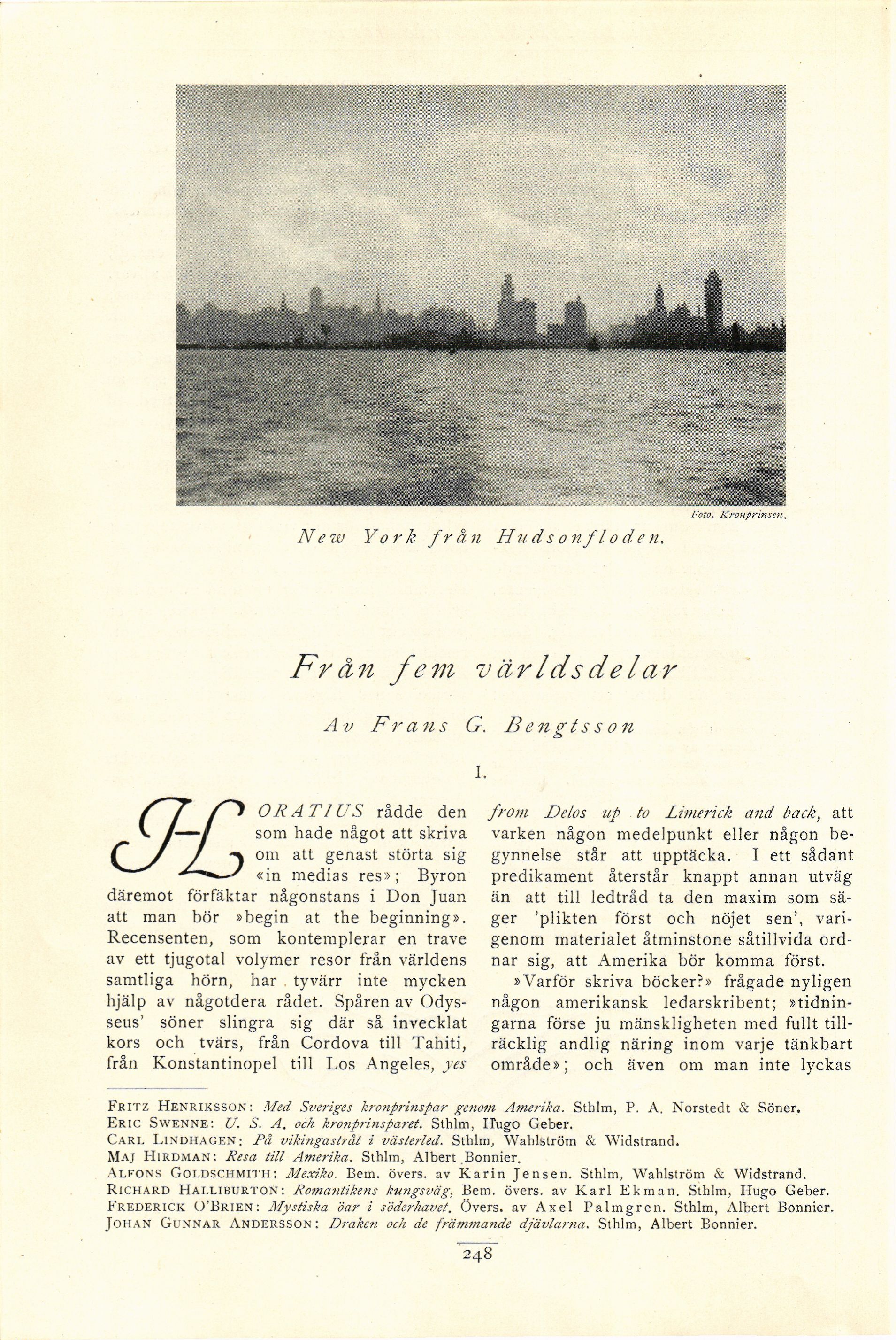 Fritz Henriksson: Med Sveriges kronprinspar genom Amerika. Sthlm, P. A. Norstedt & Söner.