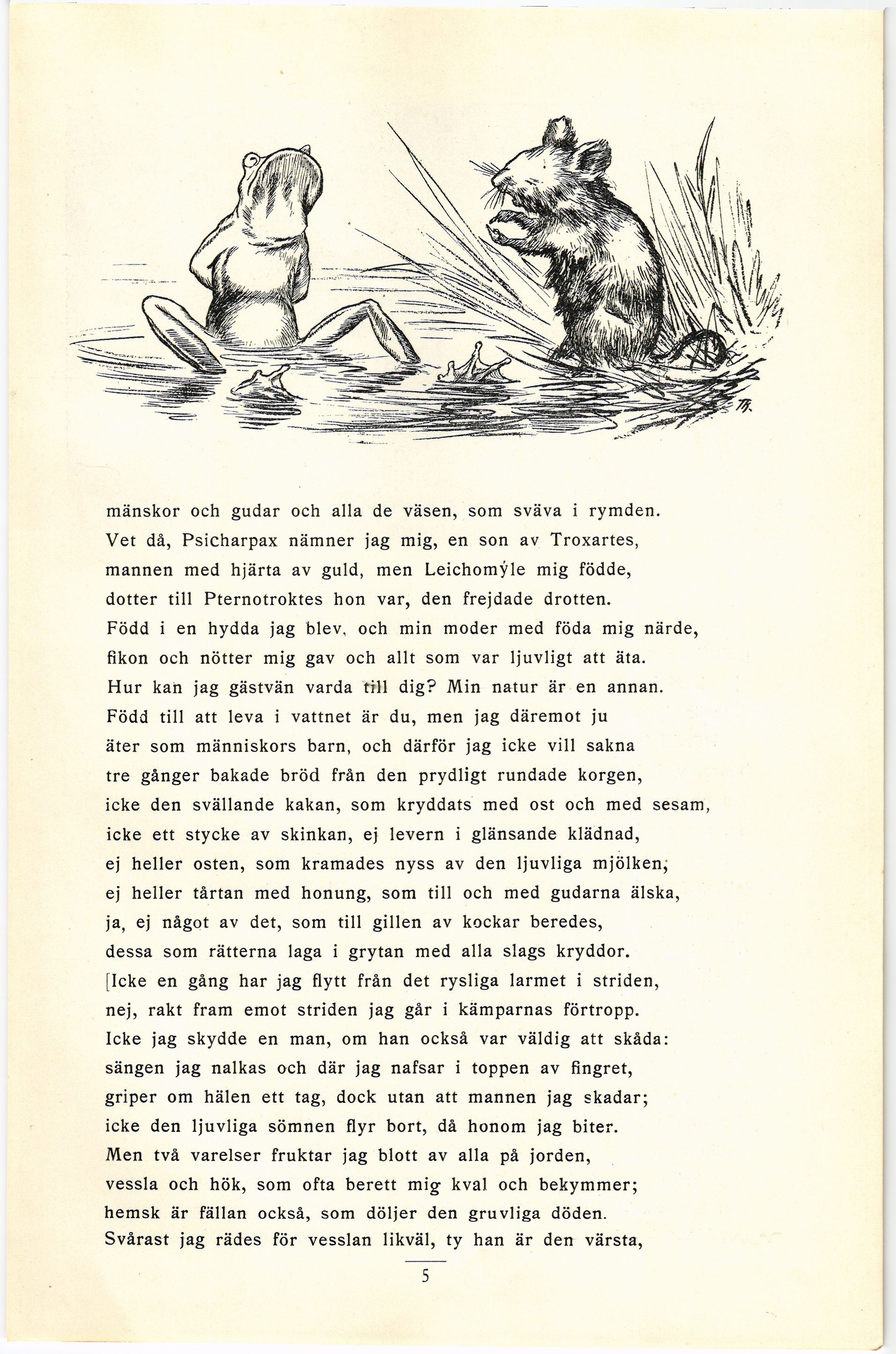 Full resolution (JPEG) - On this page / på denna sida - Första häftet - Striden mellan grodorna och mössen. Översatt från grekiskan av Elof Hellquist. Med teckningar av Th. Kittelsen