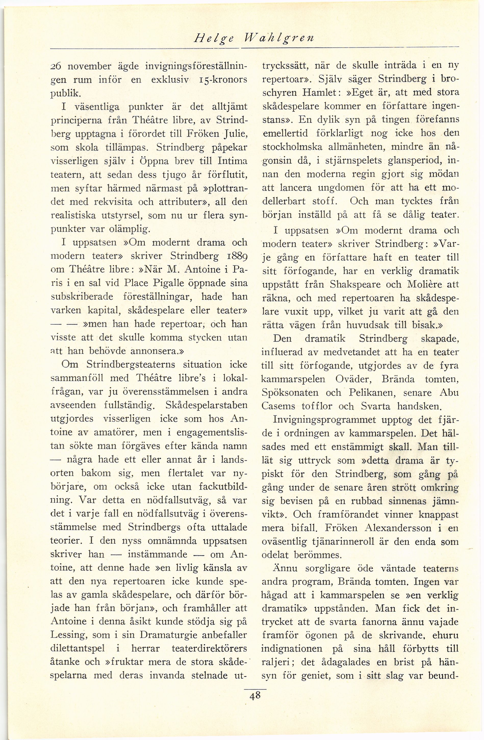 Full resolution (JPEG) - On this page / på denna sida - Första häftet - Strindbergs egen teater. Av Helge Wahlgren