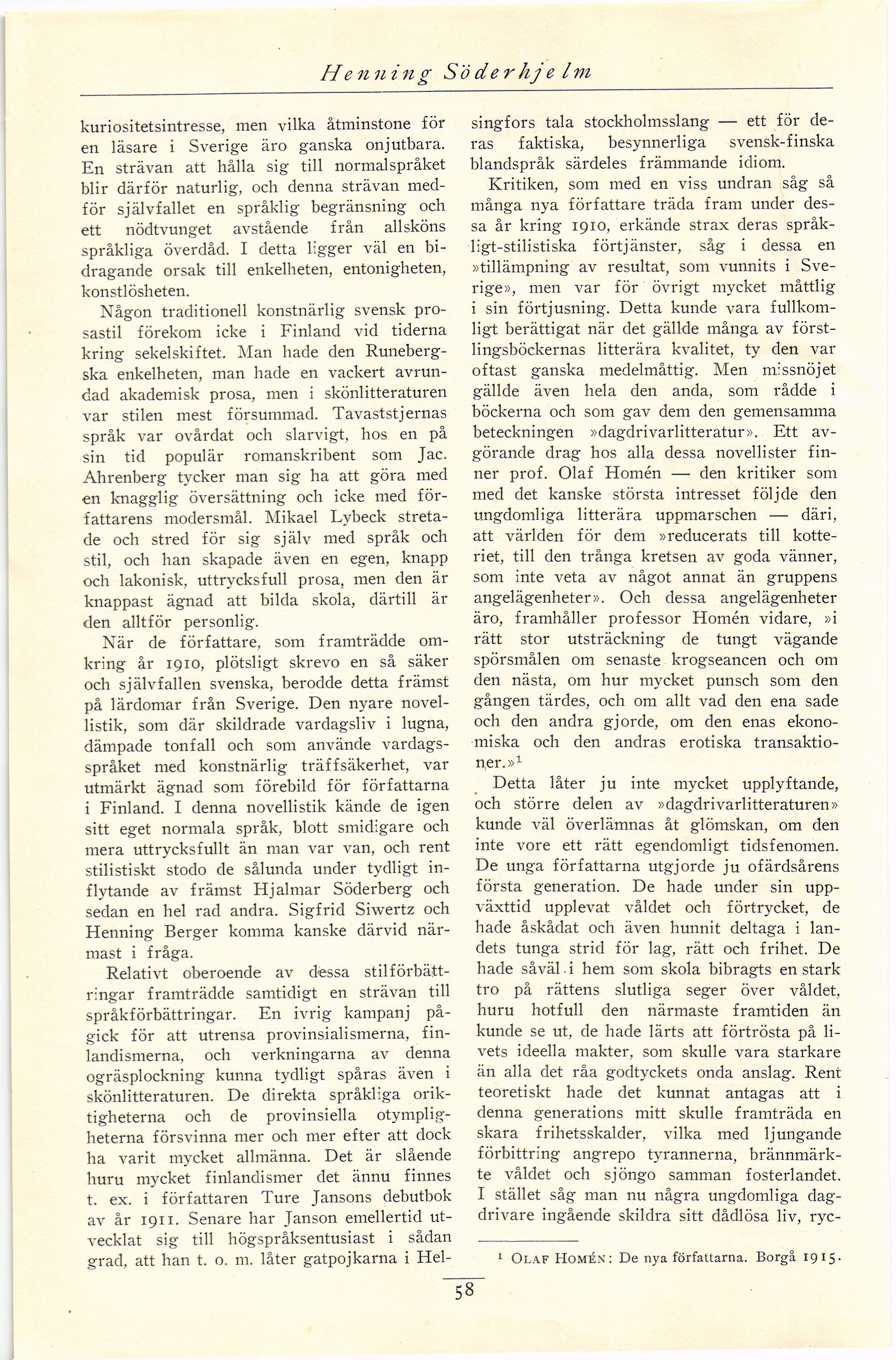 1 Olaf Homén: De nya författarna. Borgå 1915-