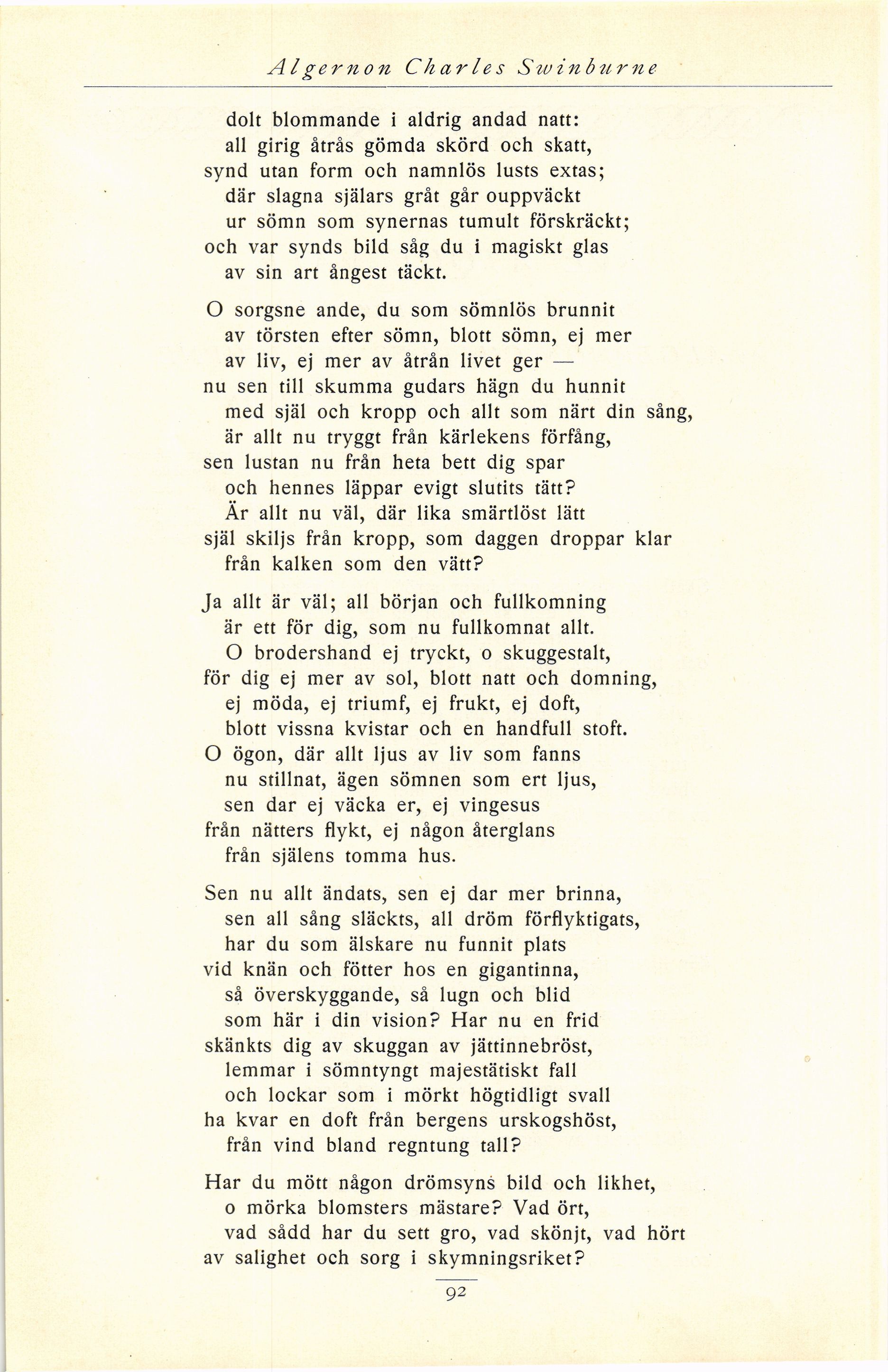 Full resolution (JPEG) - On this page / på denna sida - Andra häftet - Ave atque vale. Elegi över Charles Baudelaire. Av Algernon Charles Swinburne. Översättning av Frans G. Bengtsson