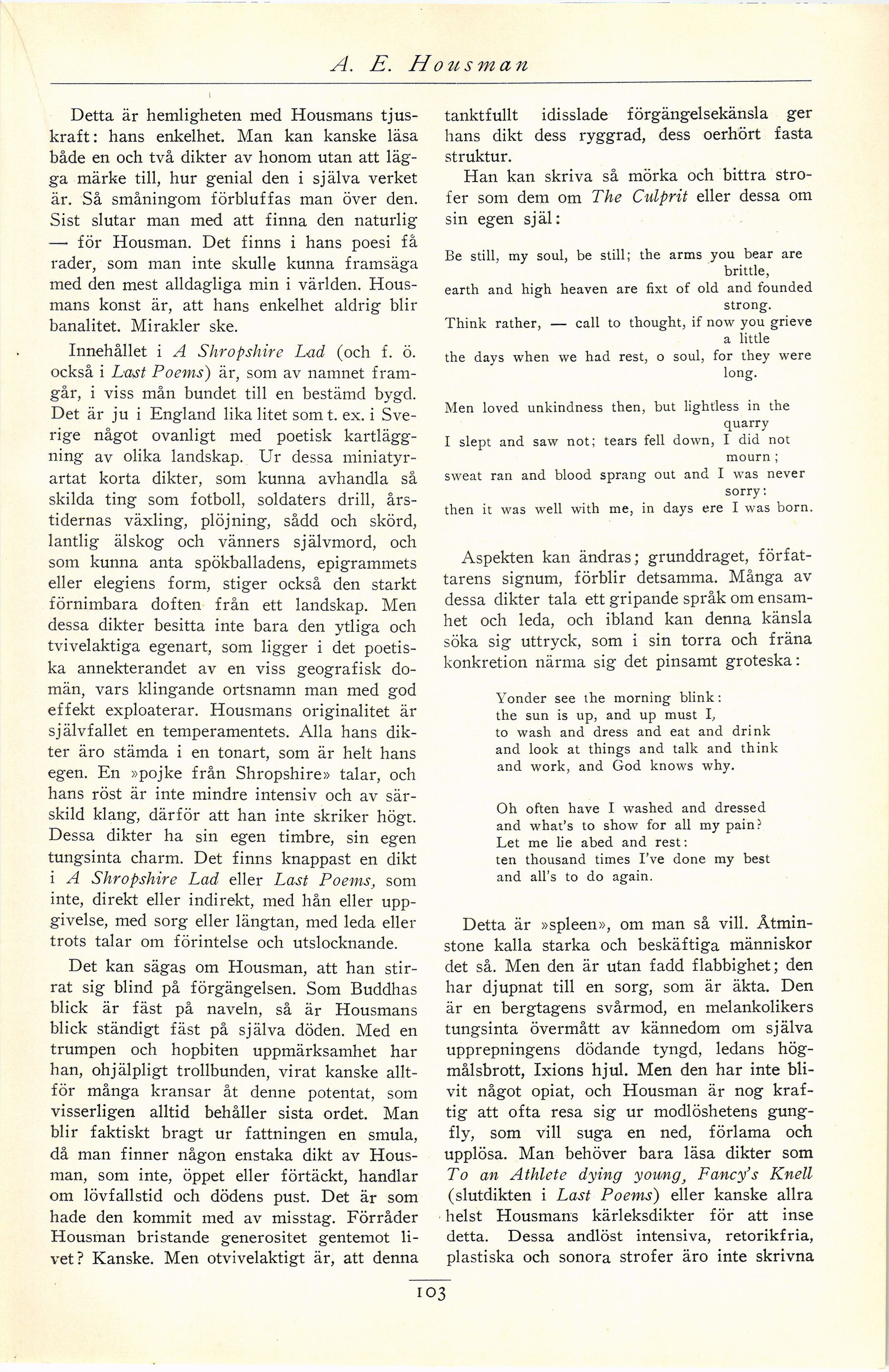 Full resolution (JPEG) - On this page / på denna sida - Andra häftet - A. E. Housman. Av Johannes Edfelt