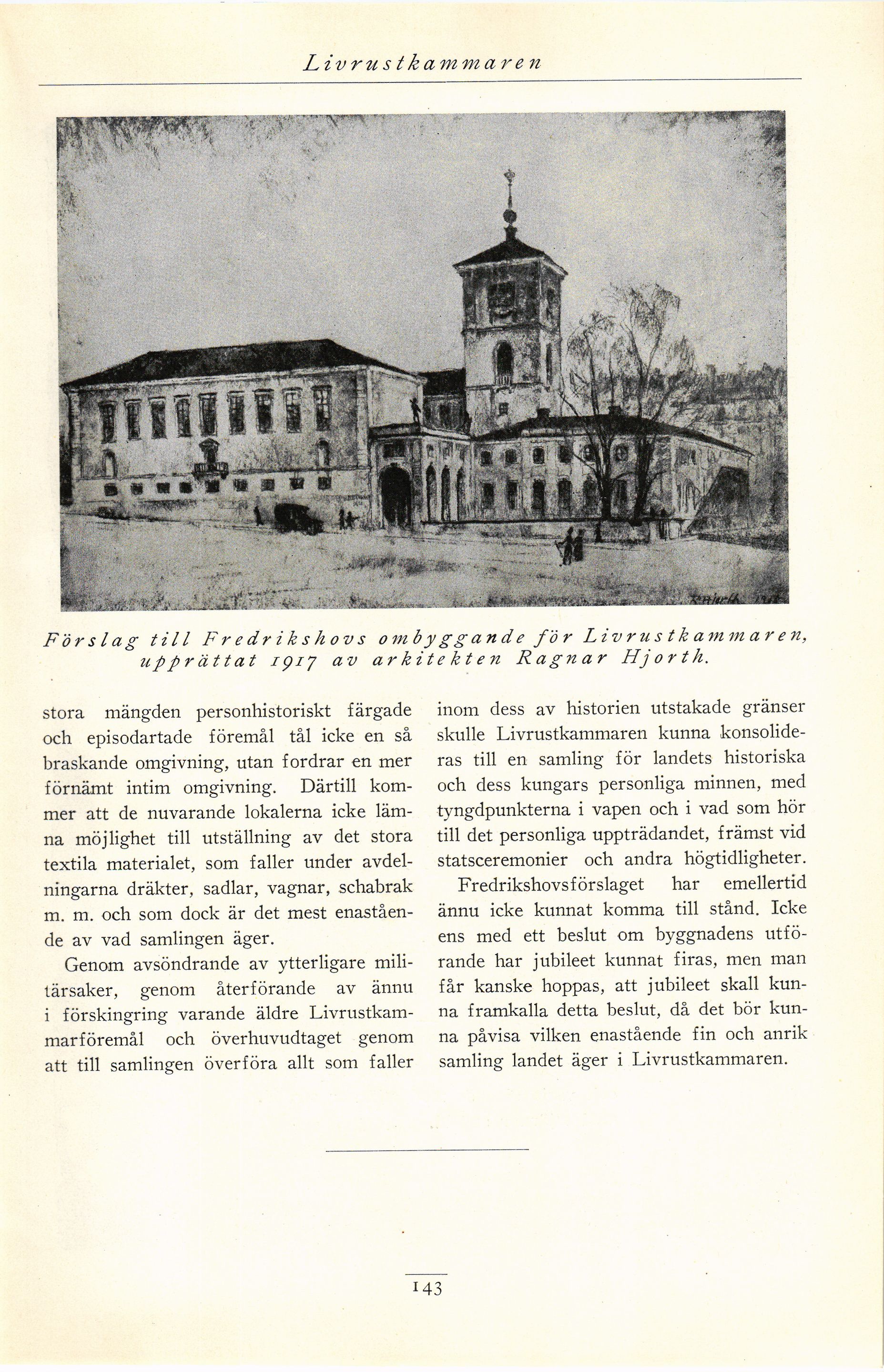 Förslag till Fredrikshovs ombyggande för Livrustkammaren,