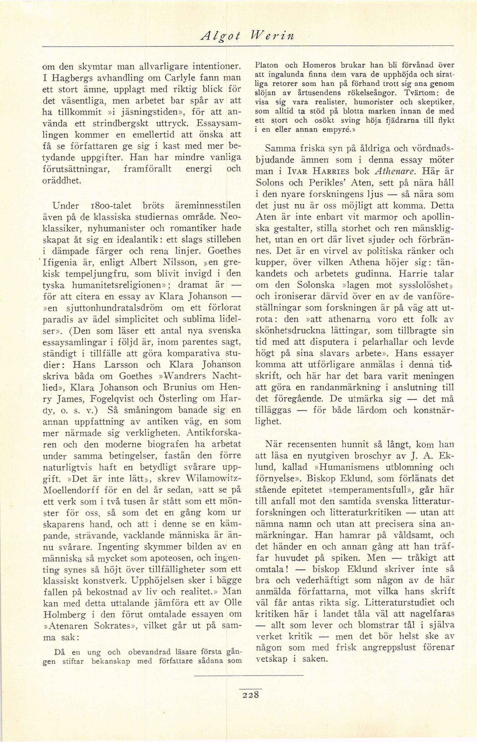 Full resolution (JPEG) - On this page / på denna sida - Fjärde häftet - Svensk essaykonst. Av Algot Werin. 2