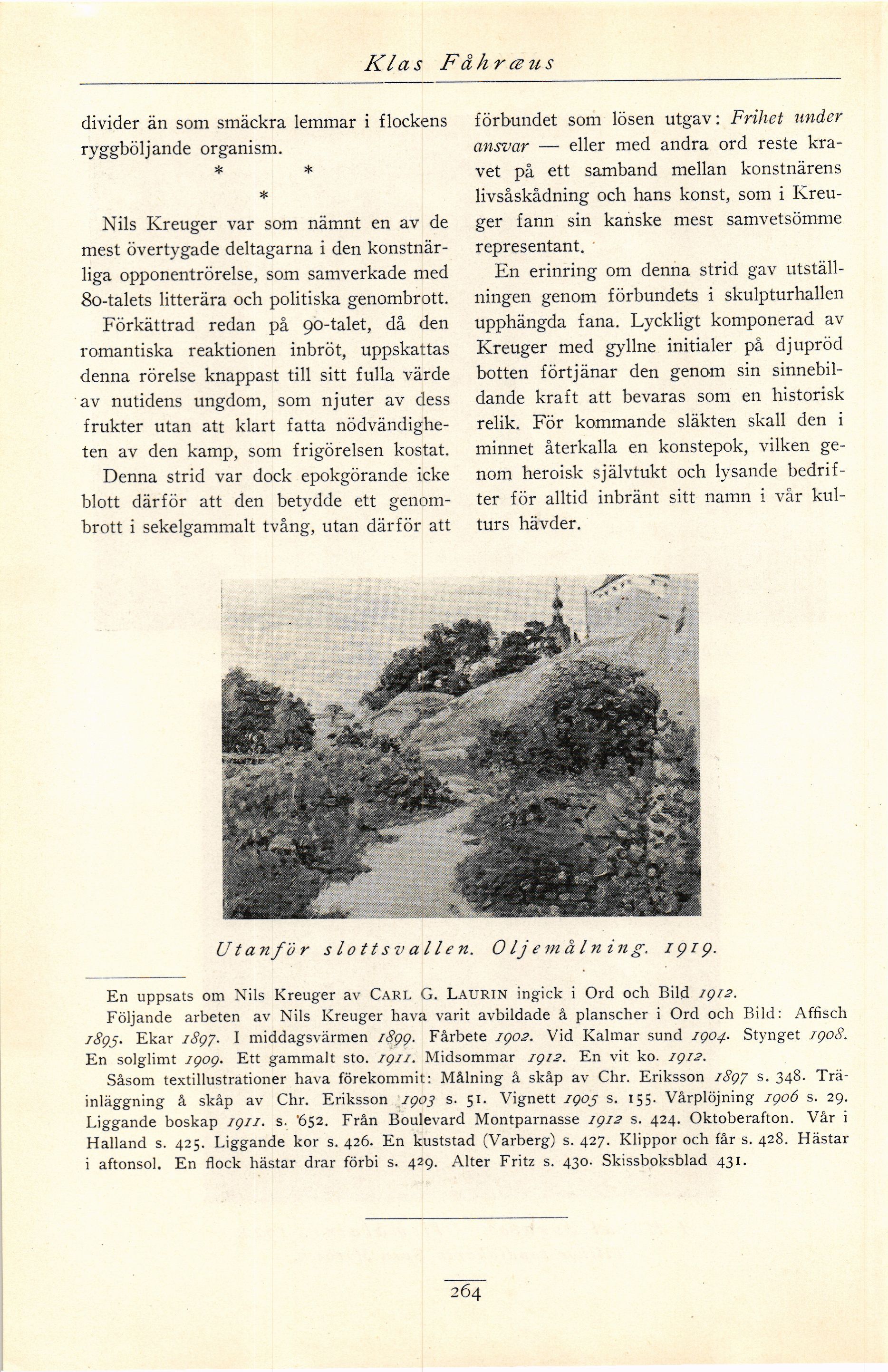 En uppsats om Nils Kreuger av CARL G. laurin ingick i Ord och Bild igi2.
