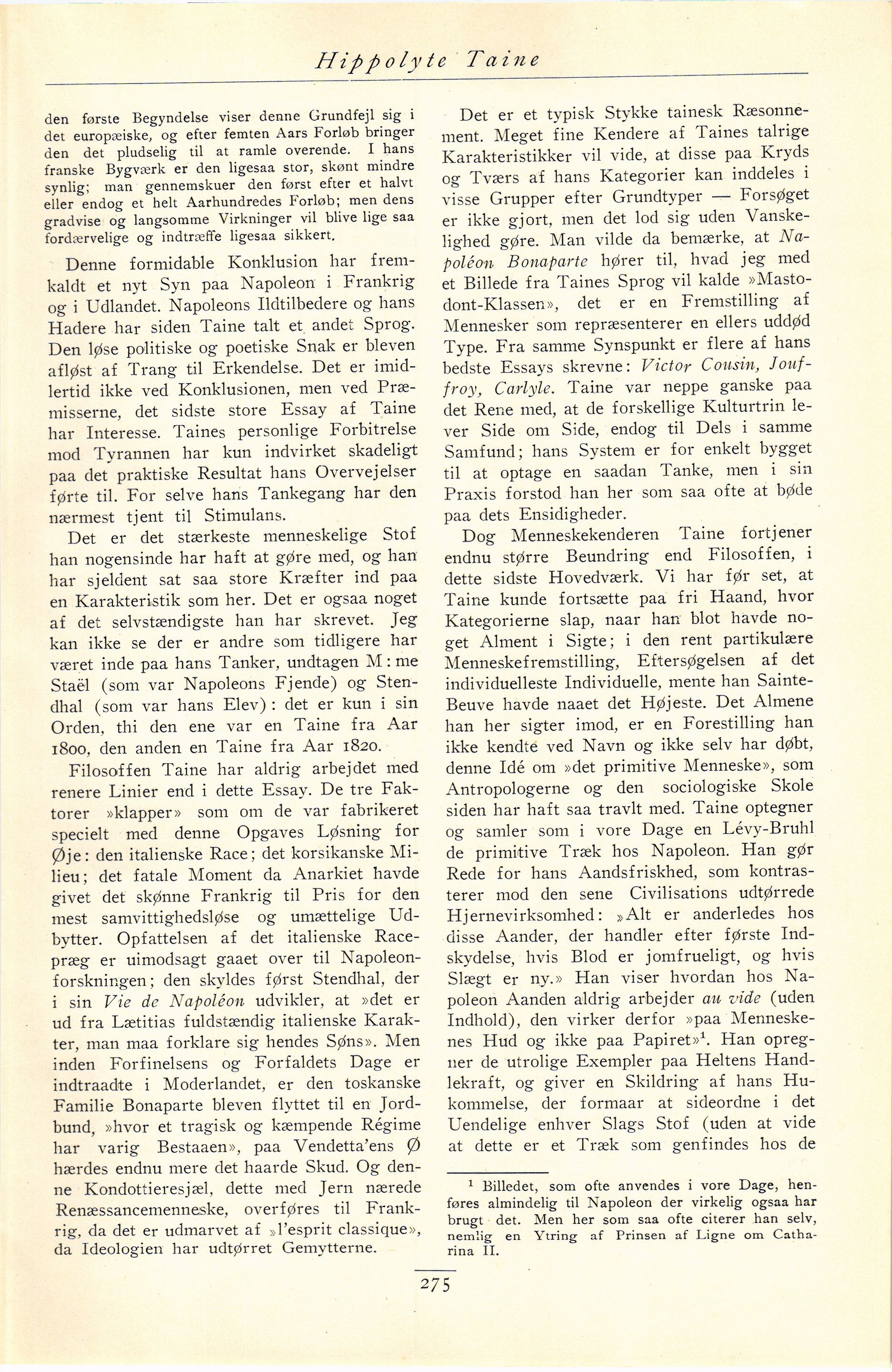 siden har haft saa travlt med. Taine optegner